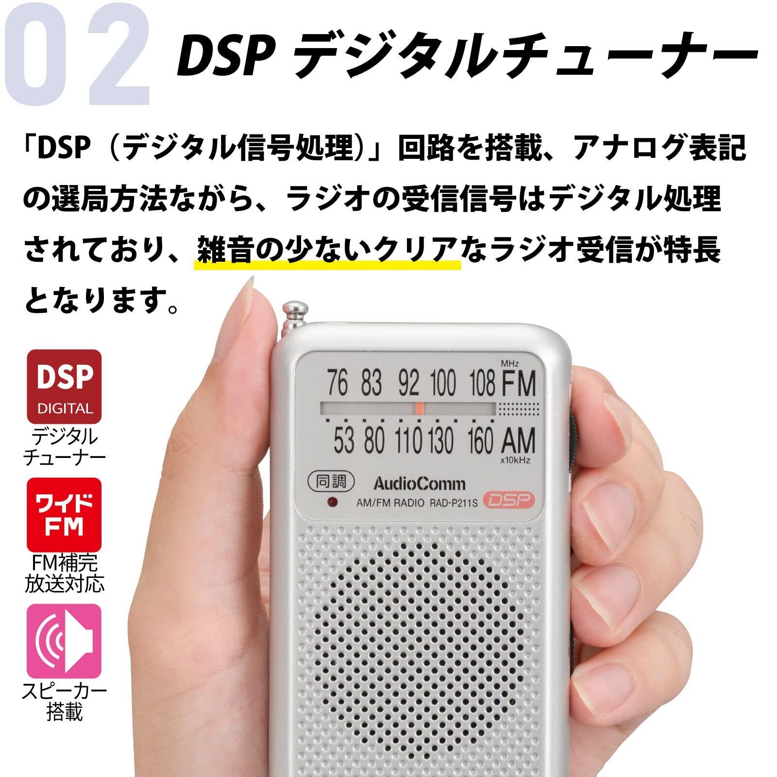 【在庫セール】オーム電機AudioComm ポケットラジオ AM/FM シルバー RAD-P211S-S 03-0975 OHM