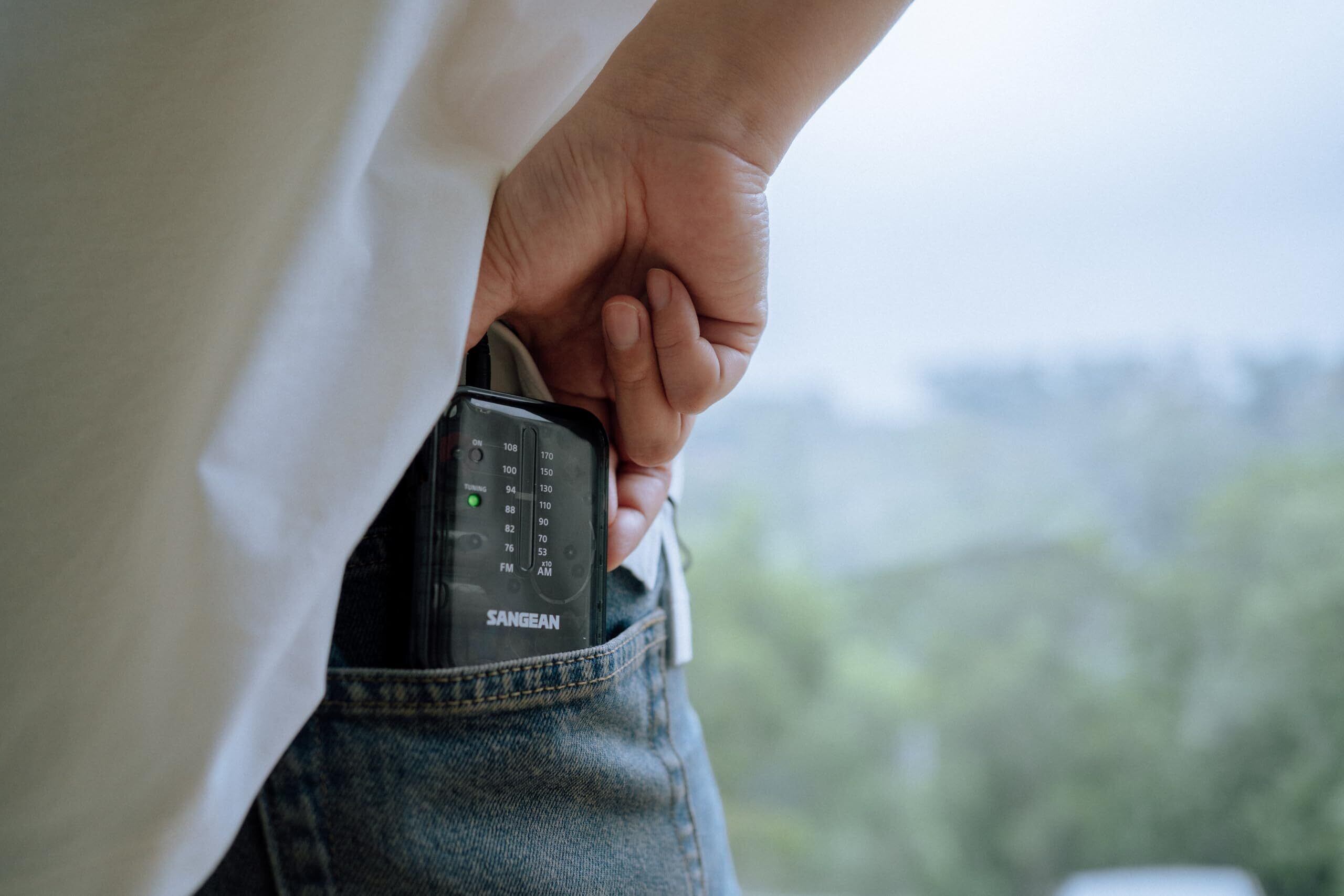 【国内正規品】Sangean SR-32 AM/FMポケットラジオ、単3電池式、ポータブルラジオ、イヤホン付属 (クリアブラック)