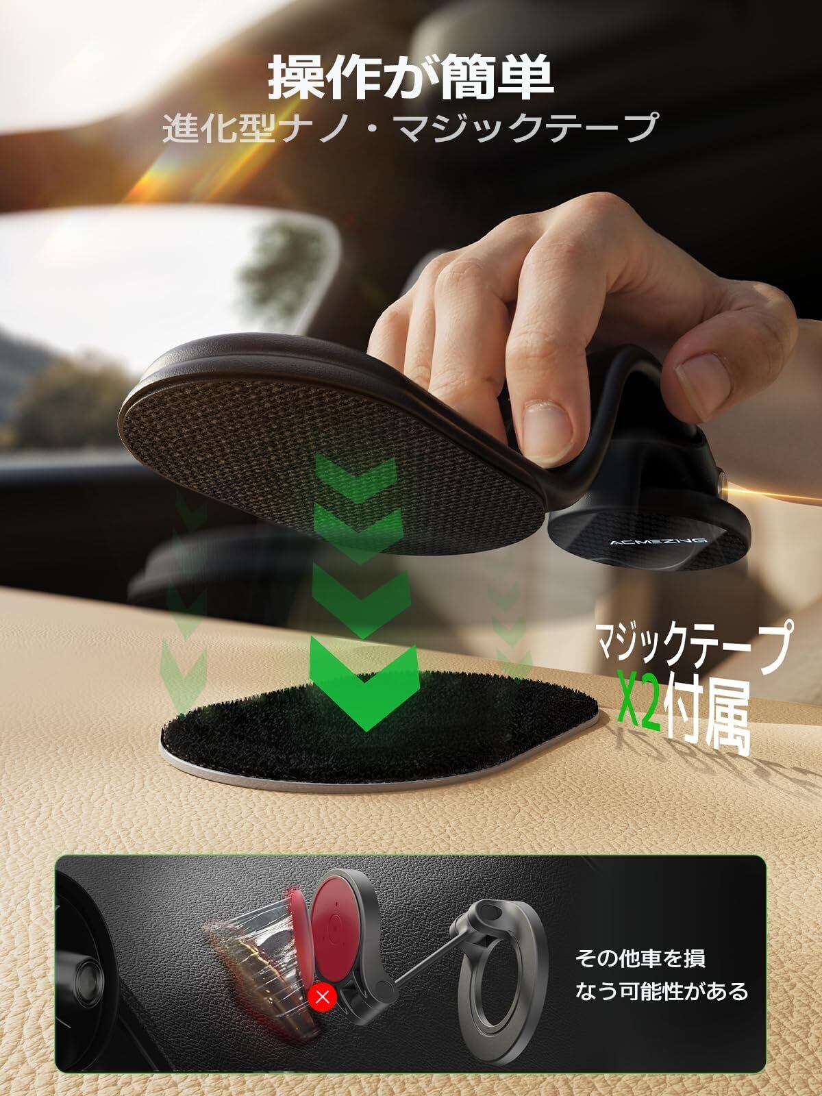 ACMEZINGは細部までこだわる製品製作のチーム全員は、「Security and Innovation 」 (セキュリティと技術革新を創造する)のブランドラインの下で、信頼・性能・デザインを全般的に考慮した設計を行い、全ての素材の採用基準を厳しくして、完璧なスマホホルダー 車 ワイヤレス充電 マグネット製品を使用者様にお届けできることを、日々追求しております。