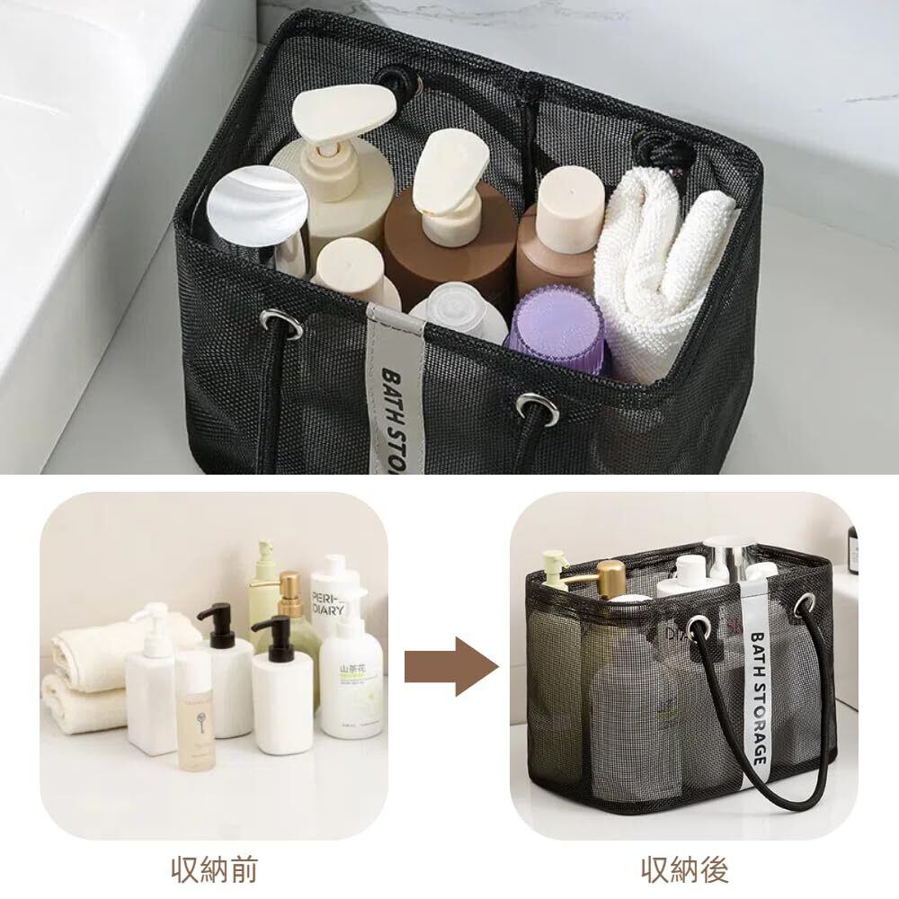 [Jravezt] 温泉バッグ プールバッグ 銭湯 バス プール サウナ 風呂 海水浴 水泳 手提げバッグ お持ち運び便利 メッシュ カゴ 洗面用具 バスグッズ 便利な収納