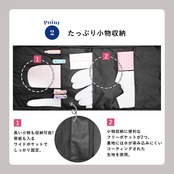 約20cmのゆったりマチで、帯板や衿芯などの長さのある小物も折ることなく収納。 ファスナーを開けバッグを開くと、着物用たとう紙もすっぽりと収まるサイズ感。 さらに収納ポケットが2つ、通気性の良いメッシュカバーが付いています。 巾着は、履物用としても小物収納用としても使えてとても便利。外ポケットには傘もイン。