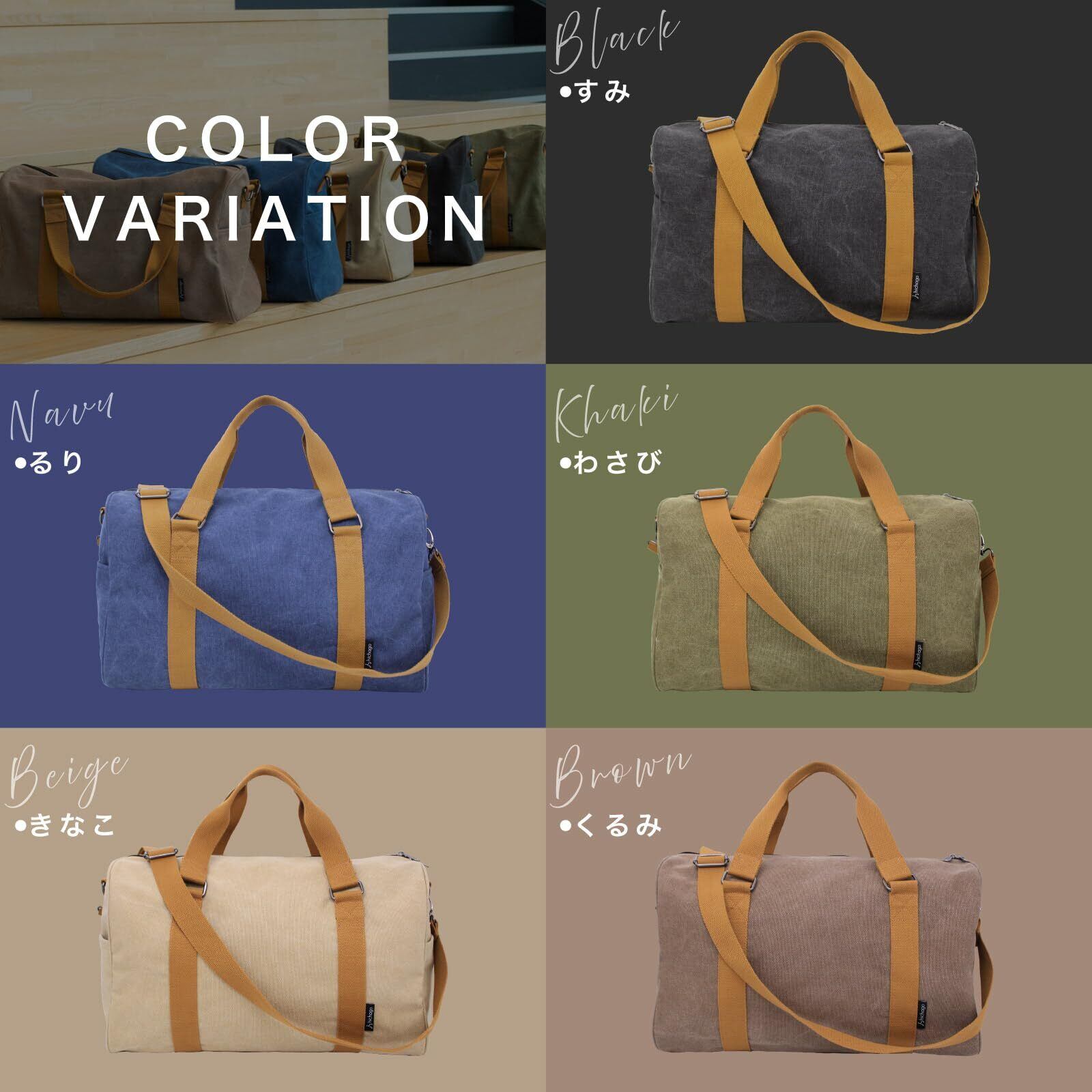 【数量限定】hichago ボストンバッグ 【厚手のキャンバス生地】 旅行 40L 大容量 3WAY ショルダー付き キャリーオン対応 機内持ち込み (わさび)
