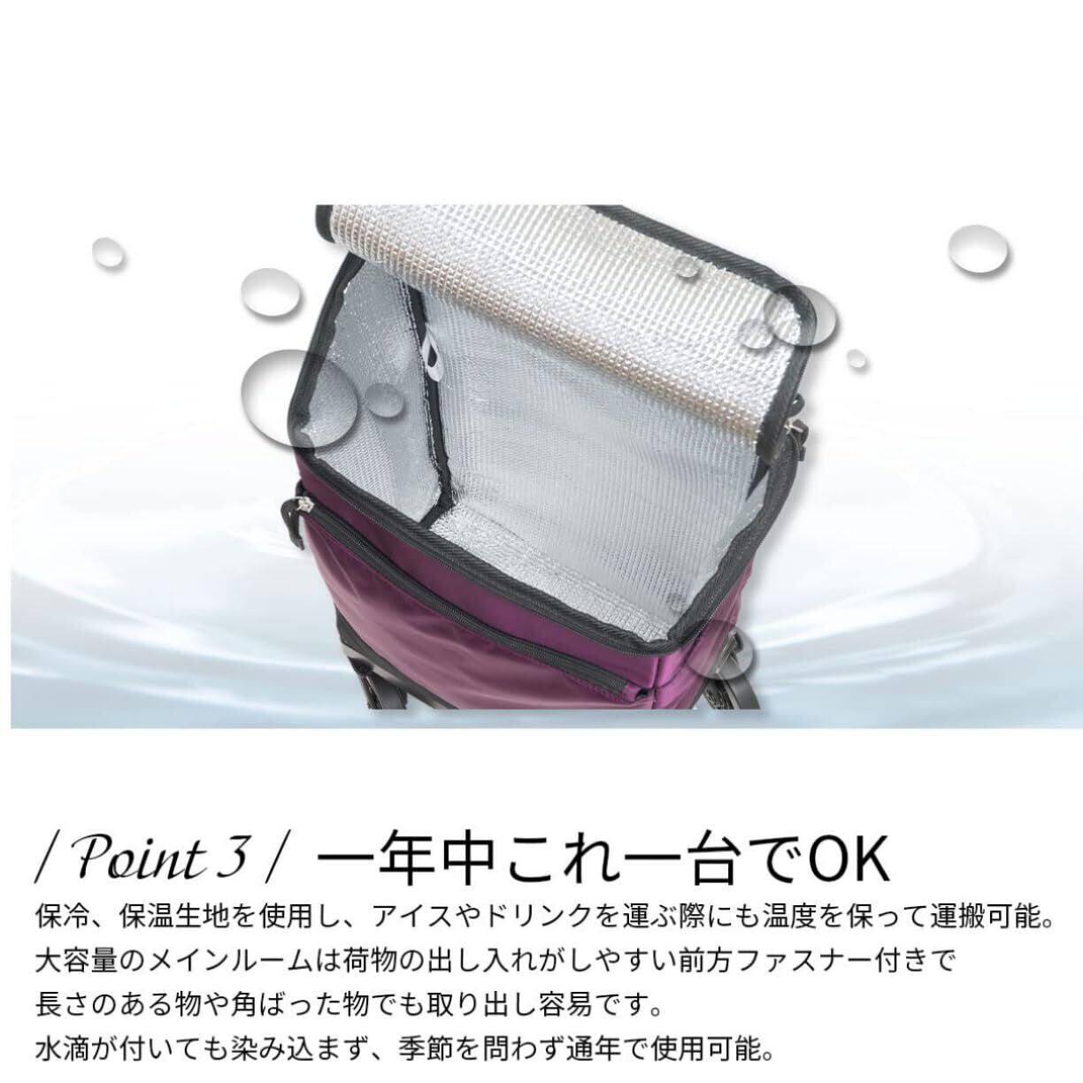 【一年中これ一台でOK】保冷、保温生地を使用しているので、アイスやドリンクを運ぶ際にも温度を保って運搬可能。水滴が付いても染み込まない生地を採用し、季節を問わず通年で快適にご使用いただけます。