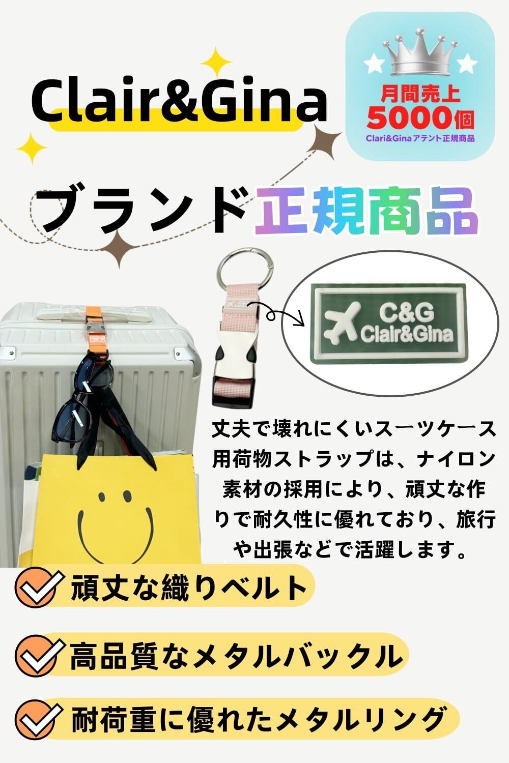 【数量限定】[Clair&Gina] リュック ベルト ワンタッチベルト ナイロン 旅行便利グッズ 両手解放 調節可能 カバン フック 出張 トラベル 【正規品】