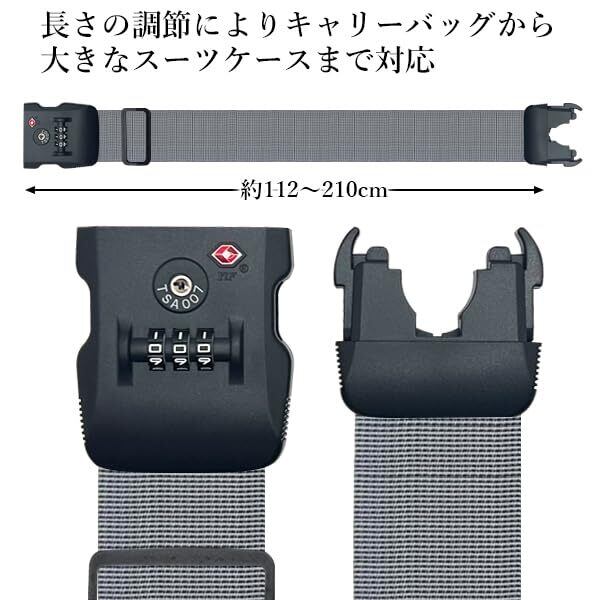 【TSAロック】スーツケース ベルト 3桁ダイヤル式 バンド 長さ調節可能 I字型 旅行 盗難防止 便利グッズ キャリーケース グレー
