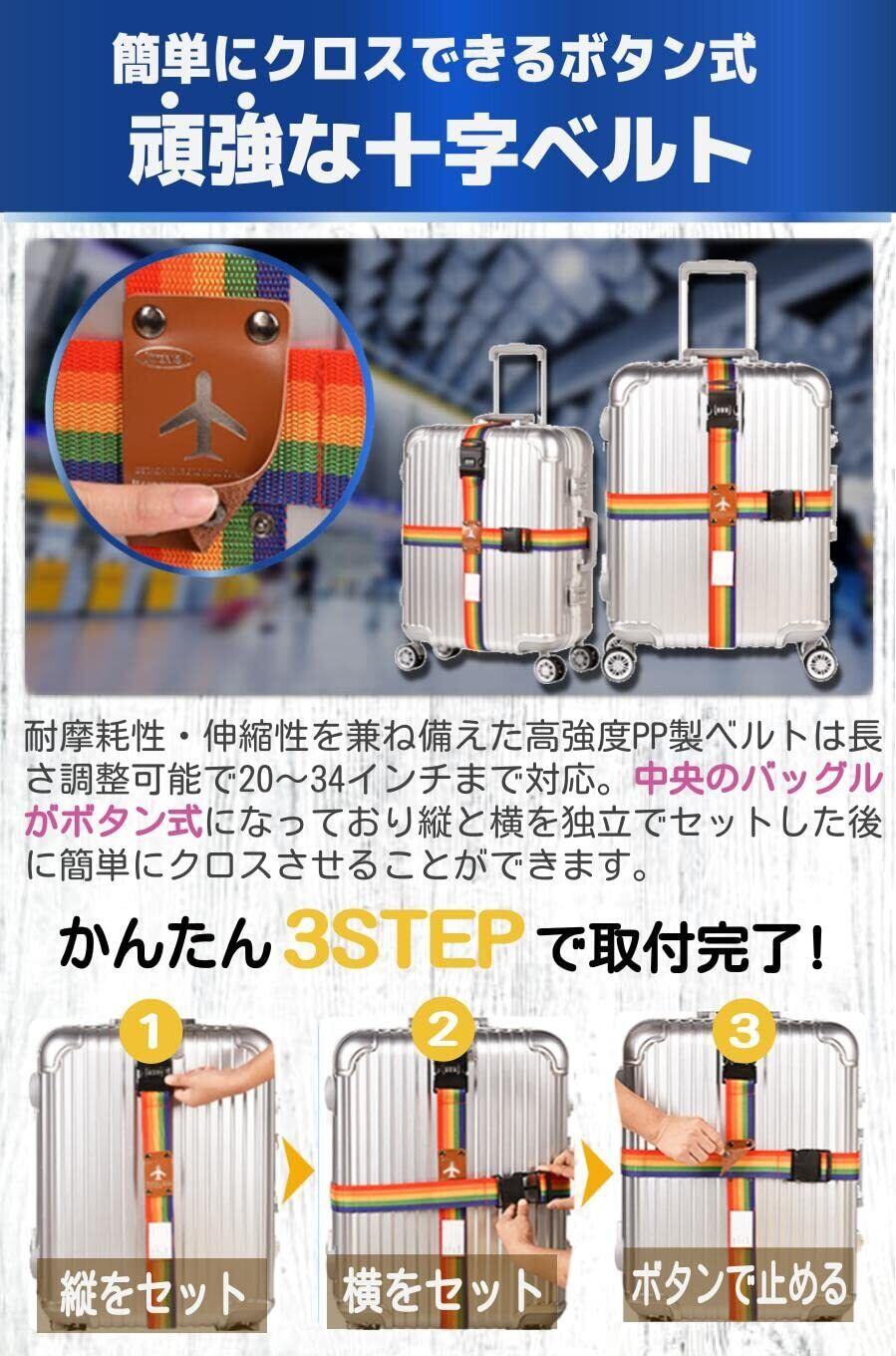 【商品特徴】レザー製のバッグル:高級感のあるレザーと固定力抜群のダブルボタン 3桁ダイヤルロック:3桁のデジタルロックで盗難を防止 調整可能なベルト:20~34インチのスーツケースに対応できる調整ベルト 情報ラベル付き:紛失時にも心配を一掃する情報ラベル