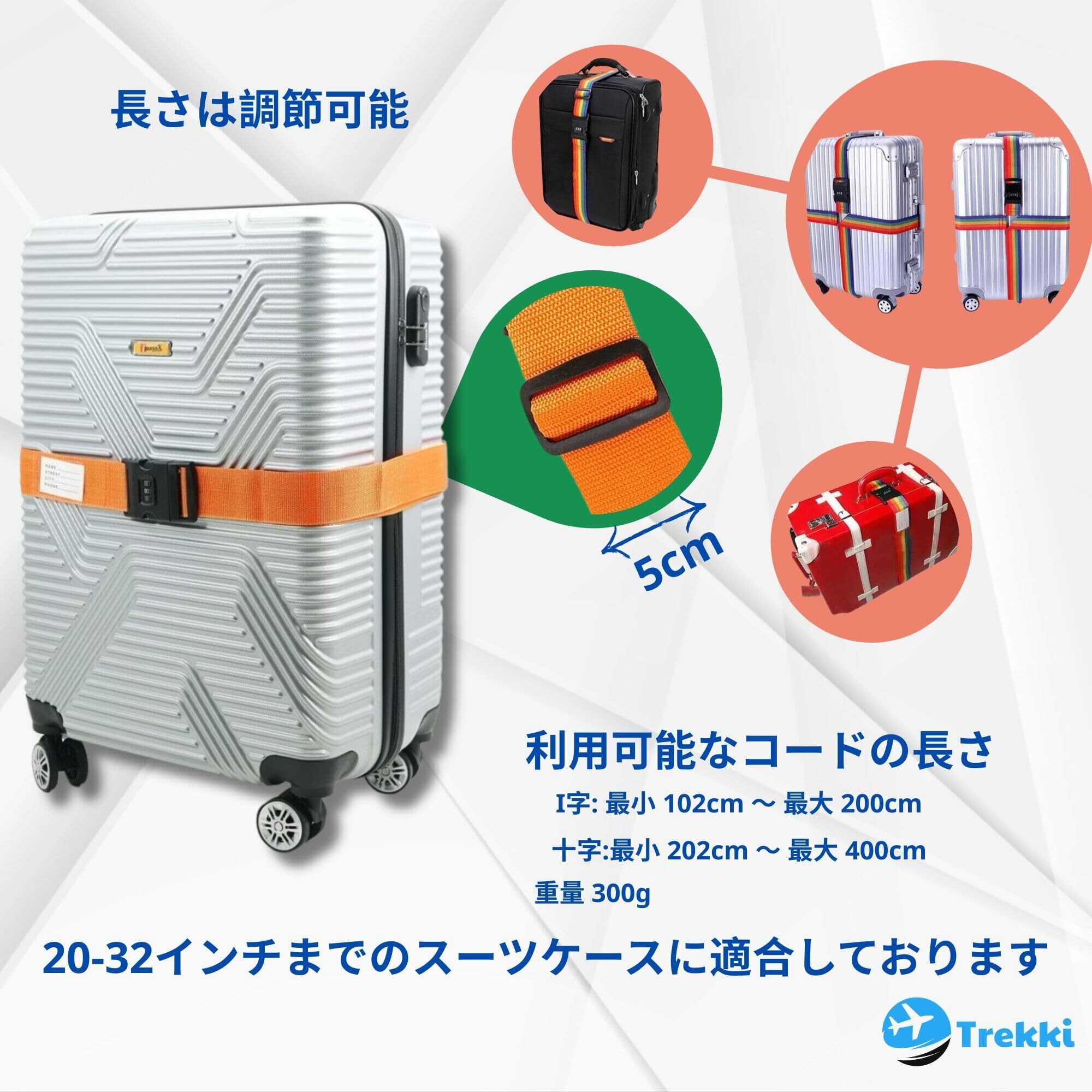 【数量限定】Trekki スーツケースベルト セット2個 [I字/十字] 盗難防止・荷崩れ防止 トラベルベルト 長さ調節可能 海外旅行・出張用 キャリーケース・トランク用 おしゃれで目立つデザイン(オレンジ)