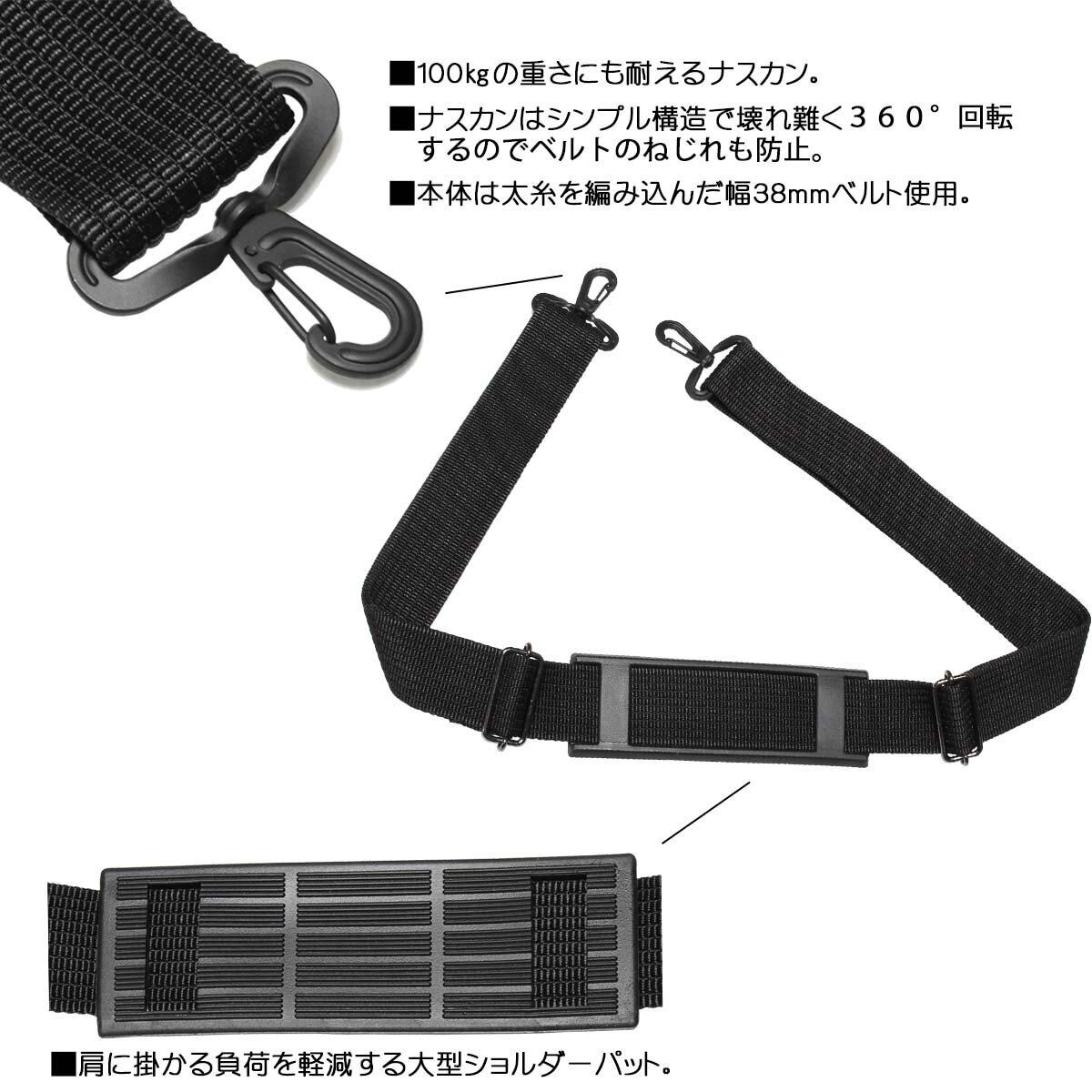 [Curuiser] ショルダーベルト 日本製 強い 丈夫 高耐久 ナイロン素材 (ブラック, 38mm)