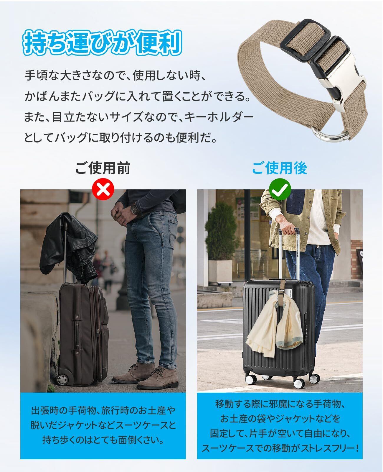 [badbowl] 荷物ストラップ ジャケットホルダー 調節可能 両手解放 スーツケース フック バッグとめるベルト キャリーケース 便利グッズ ジャケット・マフラー持ち運び 軽量 出張 旅行用品 (Khaki)