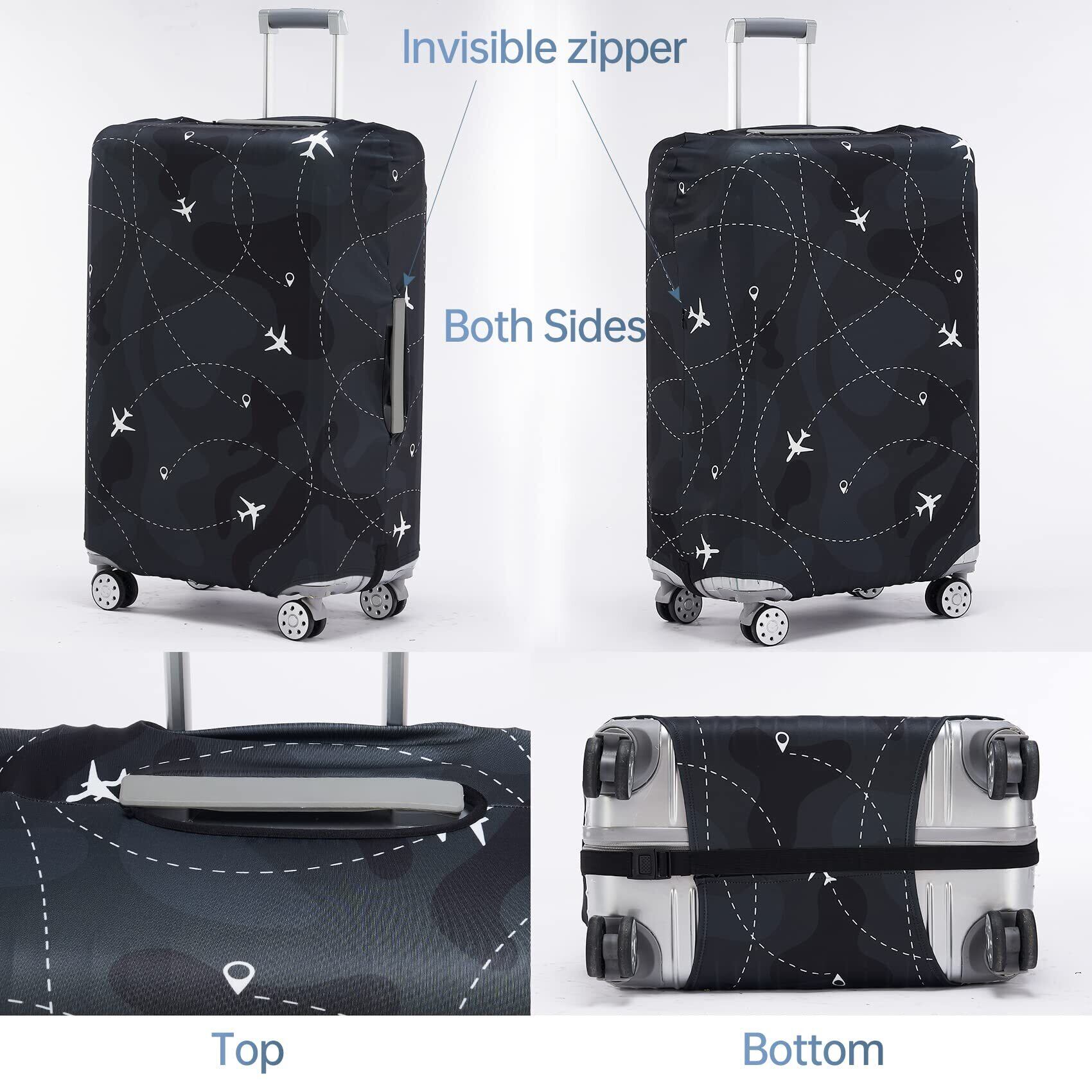 TRAVELKIN 荷物カバー 洗濯可能 スーツケースカバー スーツケースプロテクター 傷防止 18~32インチの荷物にフィット, 2-エアラインブラック。, M(22-25inch suitcase), 旅行。