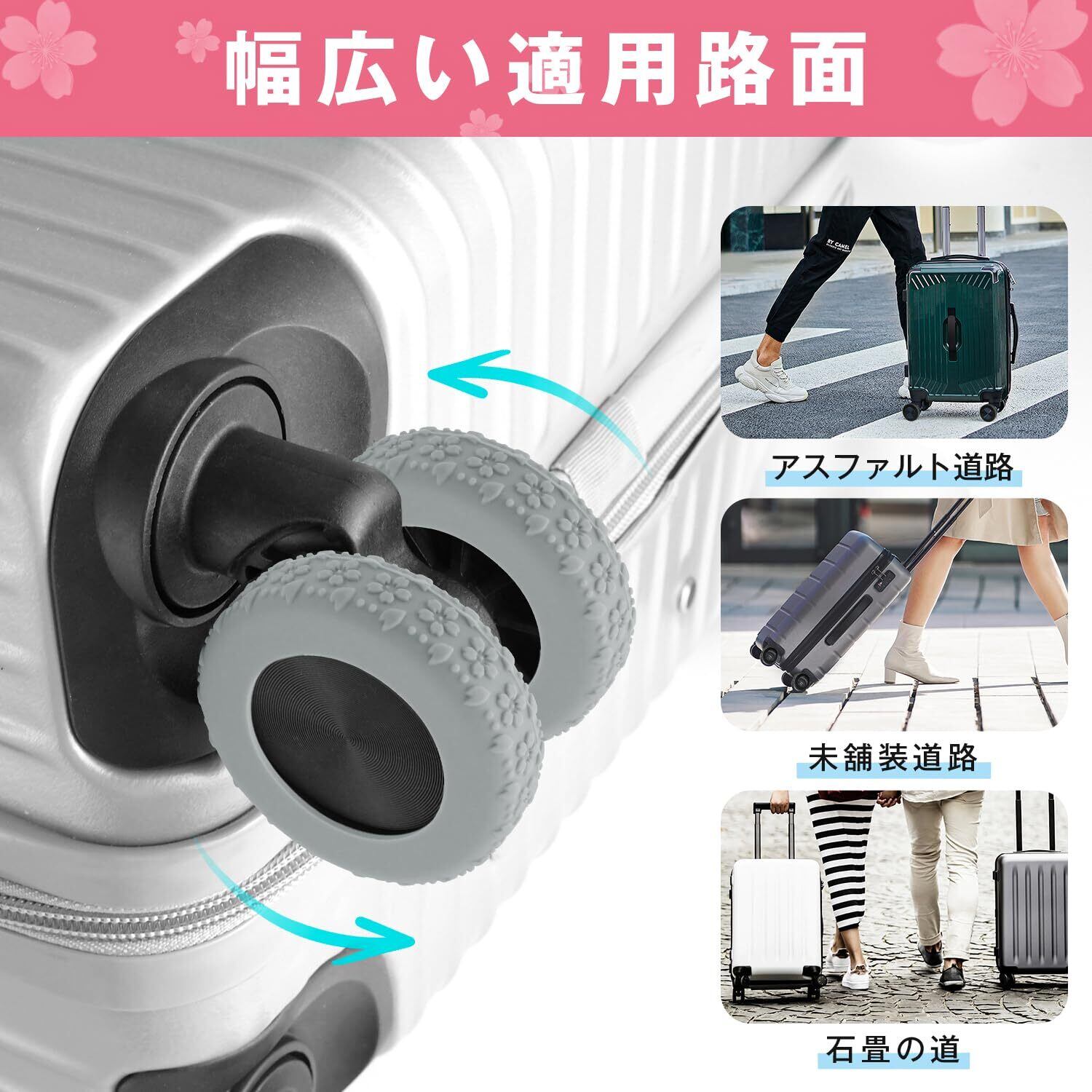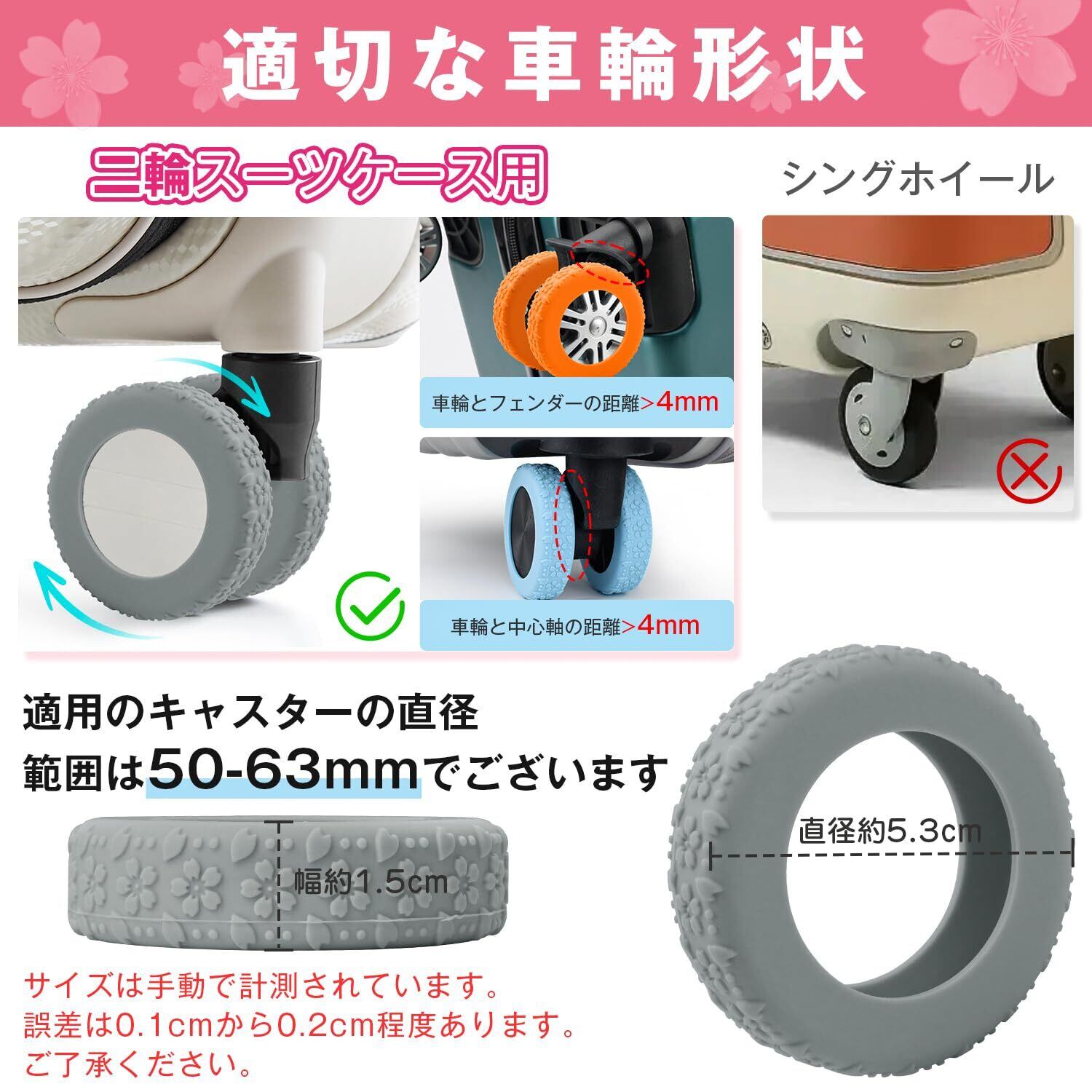 [ババミヤ] キャスターカバー スーツケース タイヤカバー 10個セッド キャリーケース 車輪カバー キャリーバッグホイールカバー 静音 キズ防止 汚れ 転がり防止 荷物保護 騒音低減 シリコン製 地面保護 荷物ホイール タイヤ用ソックス 旅行用 車輪保護用 (桜模様, グレー, 内径-50mm)