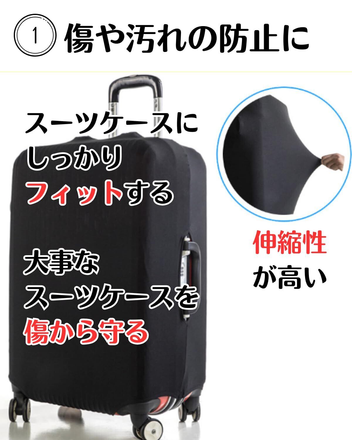 【傷や汚れ、緩衝の対策に】スーツケースやキャリーバッグの傷や汚れ、ぶつかりによる異音対策に効果的なスーツケースカバーです。伸縮性が高いのでスーツケースにフィットします。