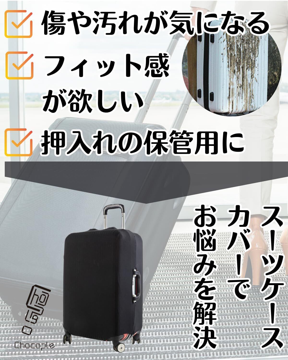 【在庫処分】[Chocople] スーツケースカバー キャリーバッグ スーツケース カバー 傷 汚れ 機内対応サイズ 洗える 伸縮性 (22〜24インチ)