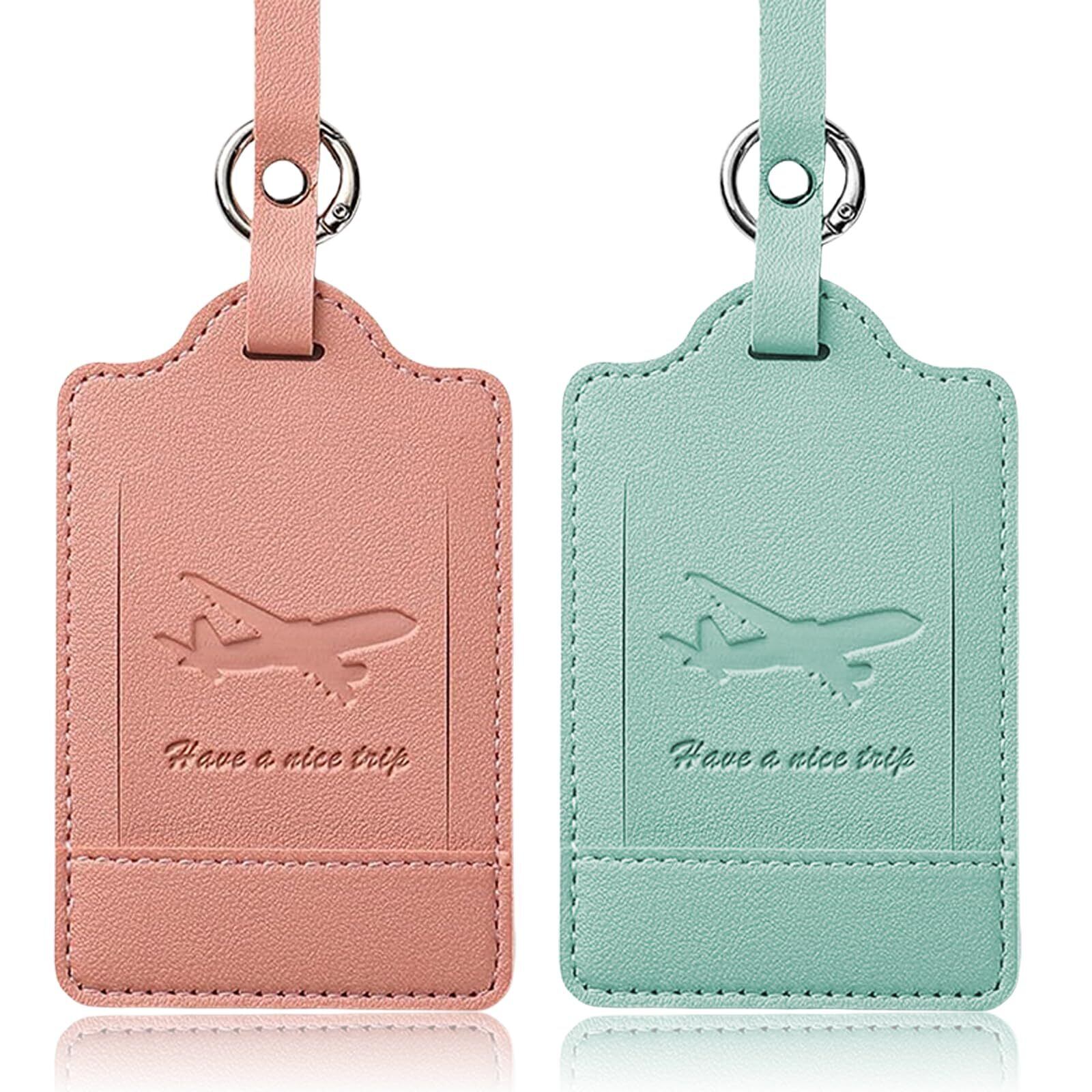 【特価セール】荷物タグ 2個入り バッグ用ネームタグ スーツケース ネームタグ 旅行タグ ラゲッジタグ ナンバータグ トラベルタグ 防水PU 超軽量 紛失防止 旅行用 出張用 荷物ラベル 名刺ホルダー ネームカード付き 男女兼用 (ライトブルー+ピンク)