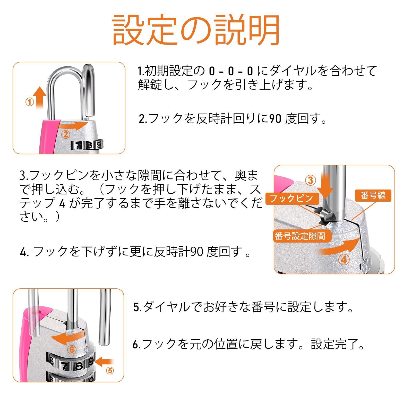 NAGE ダイヤル式南京錠 屋外 ナンバーキー 番号 小型 盗難防止 ロッカー 学校 企業 倉庫 日本語説明書(ピンク,1個)