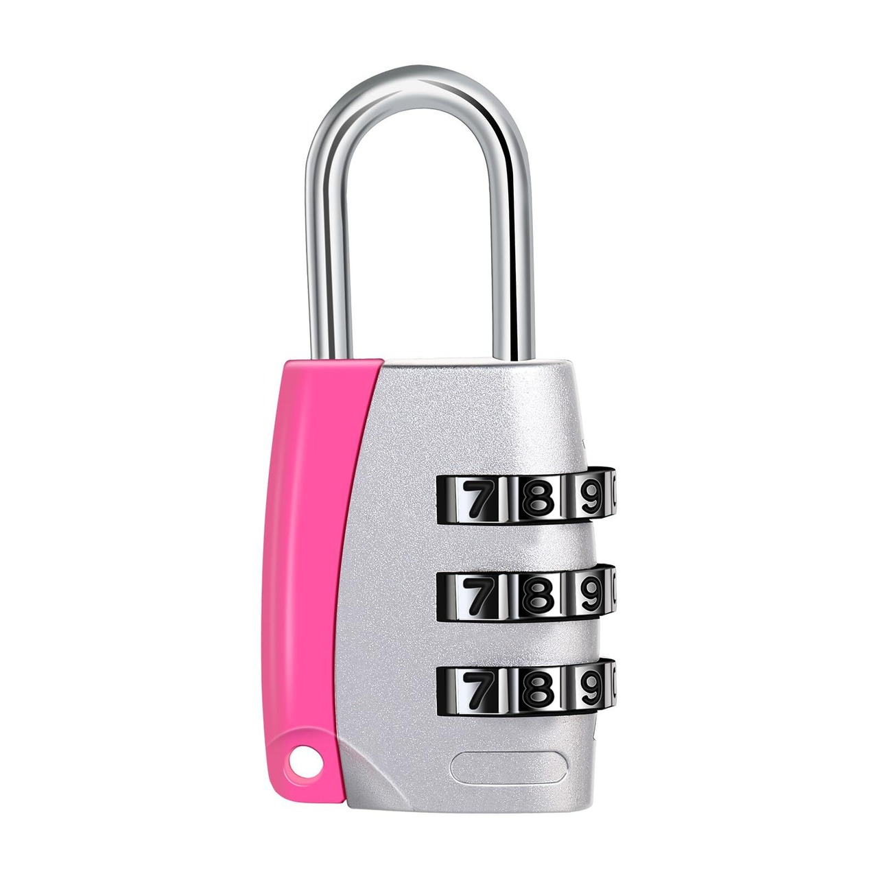 【特価セール】NAGE ダイヤル式南京錠 屋外 ナンバーキー 番号 小型 盗難防止 ロッカー 学校 企業 倉庫 日本語説明書(ピンク,1個)