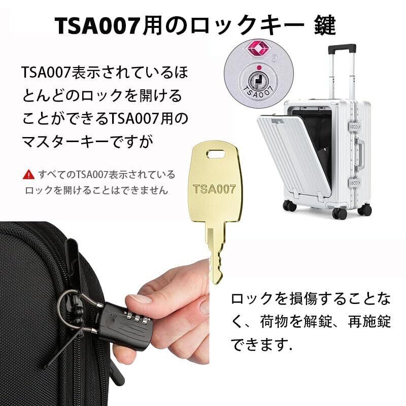 TSA007ロック用の鍵として、スーツケースを素早く便利に開けることができます。この鍵は国際航空運送協会(TSA)の基準に準拠しており、荷物を破損させることなく検査することができます。
