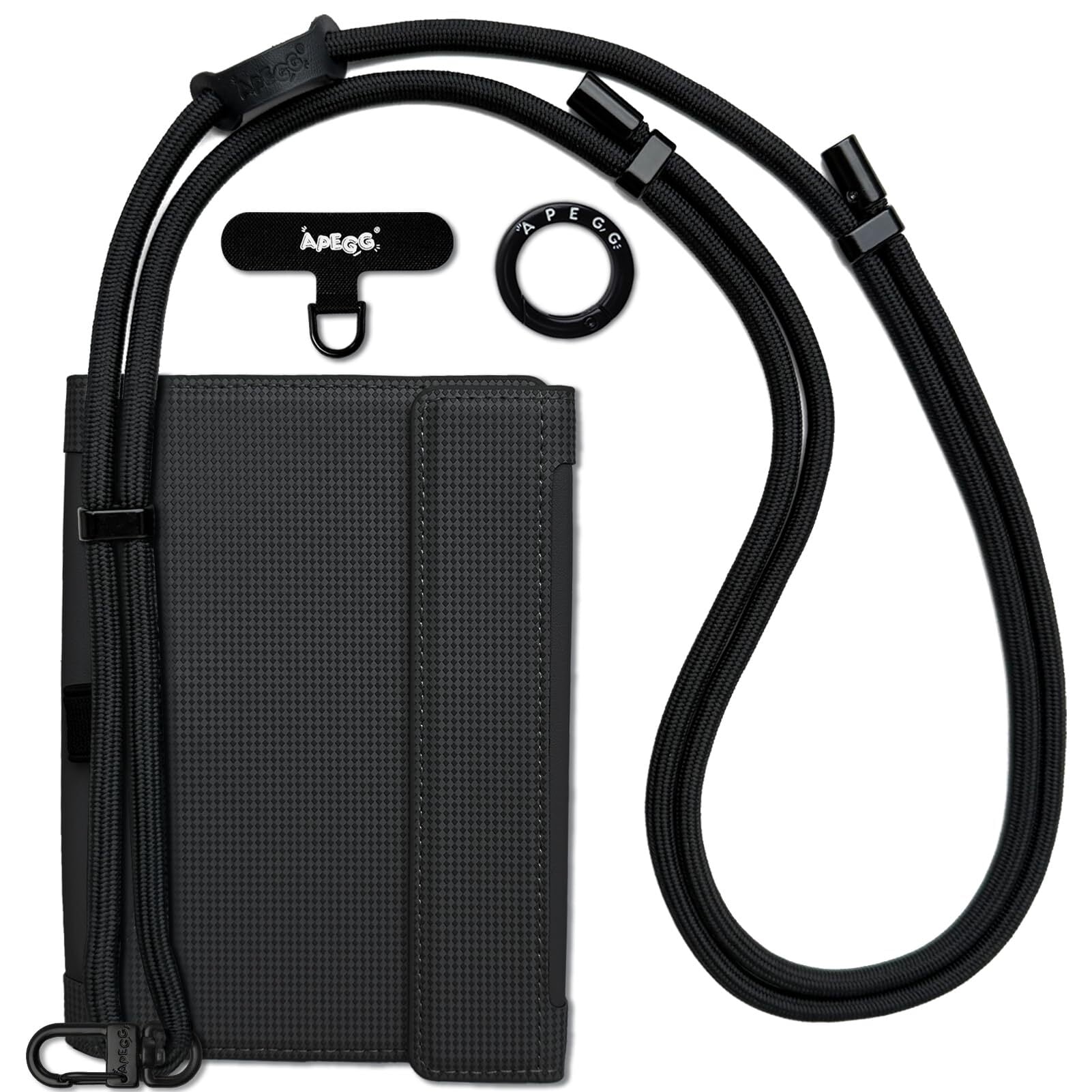 [APEGG] パスポートケース スキミング防止 RFIDブロック スマホストラップ付き 首掛け・斜め掛け対応 多機能 海外旅行ウォレット SIMカード収納 航空券 銀行カード 名刺 ペン収納 安全対策 出張向け Black