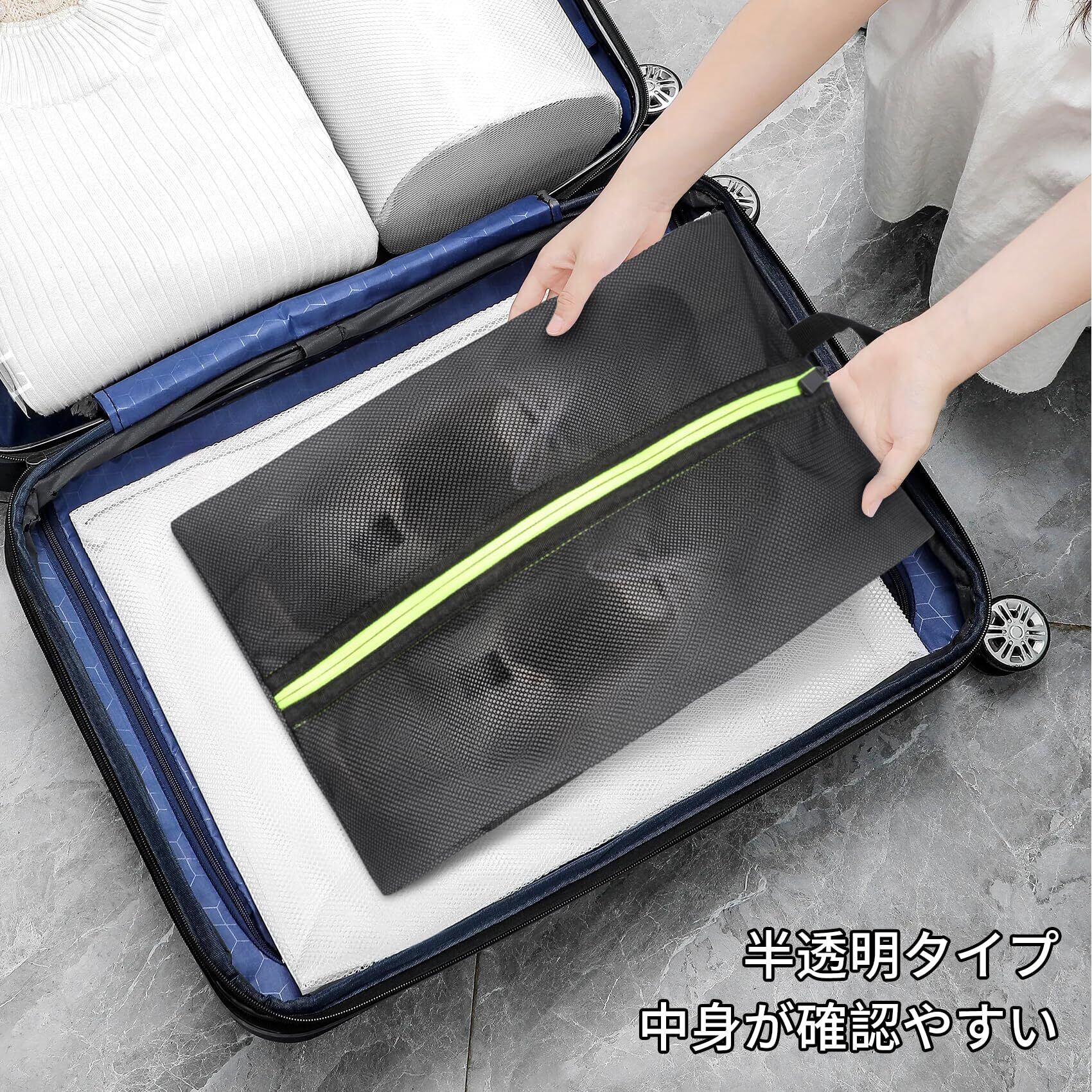 サイズ:シューズケースのサイズ約24x39x9cm。30cmまでの靴もゆったり収納可能です。バスケシューズ、スニーカー、ゴルフシューズ、革靴などの一般的な靴の大きさに合わせるサイズ、出し入れしやすいです。使わない時は、くるくる巻くだけでいつでもバッグに入れておけるサイズ。