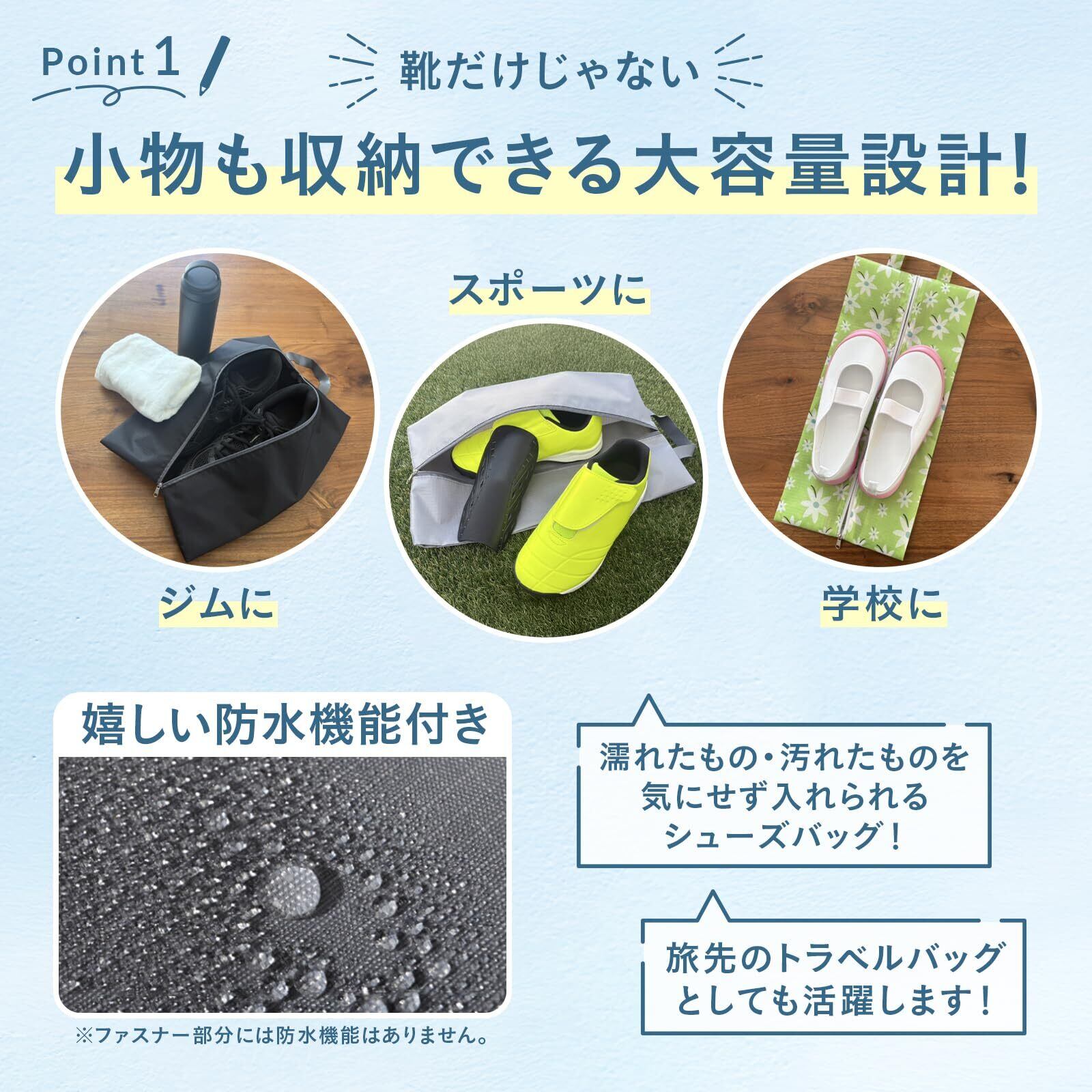 【防水素材で水や汚れをしっかりブロック】 撥水加工の防水素材を採用し、雨の日や濡れた場所でも靴をしっかりガード。汚れた靴を収納してもバッグの外側を清潔に保てます。