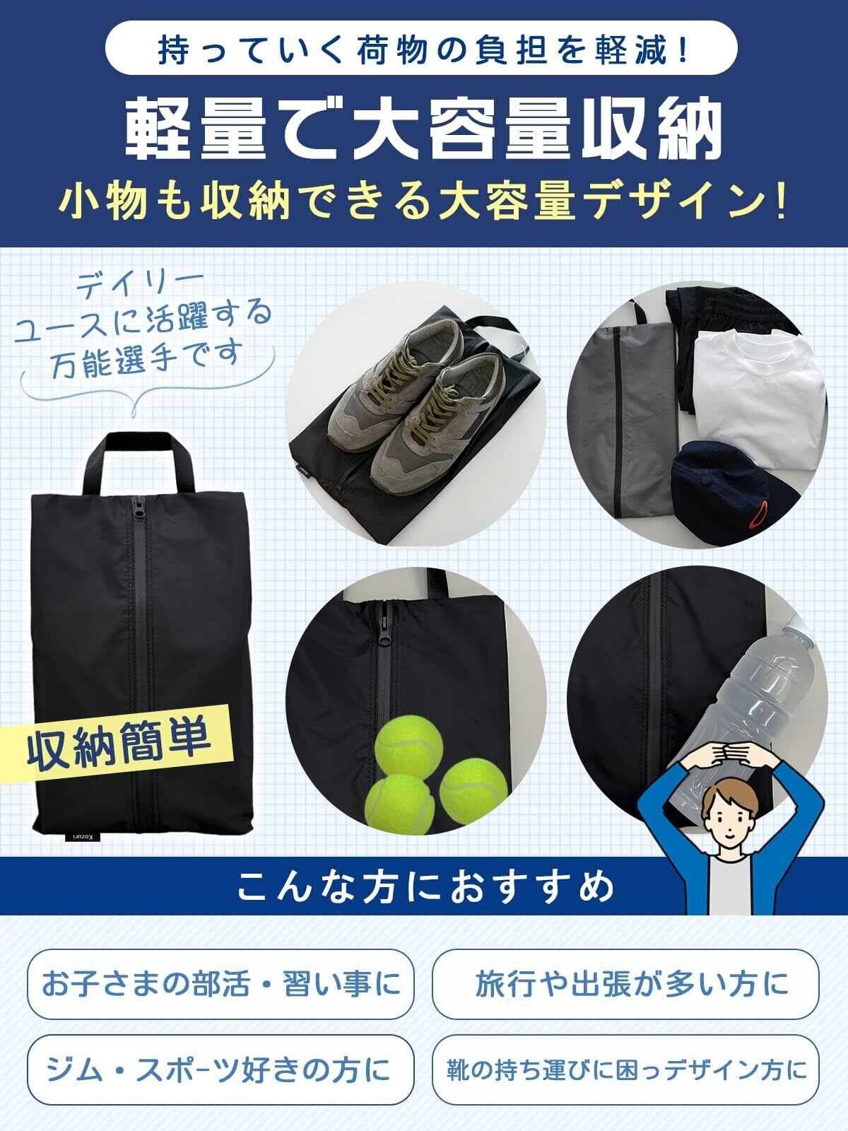 【プロ級撥水&防塵性能】濡れた靴・砂付き靴もそのまま収納可能。ポリエステル素材で衛生管理を保ちながら外部の塵をブロック。【軽量&大容量収納】最大Lサイズ(40×24cm)でブーツやバッシュも収納可能。旅行やスポーツで複数のアイテムをまとめて持ち運べます。