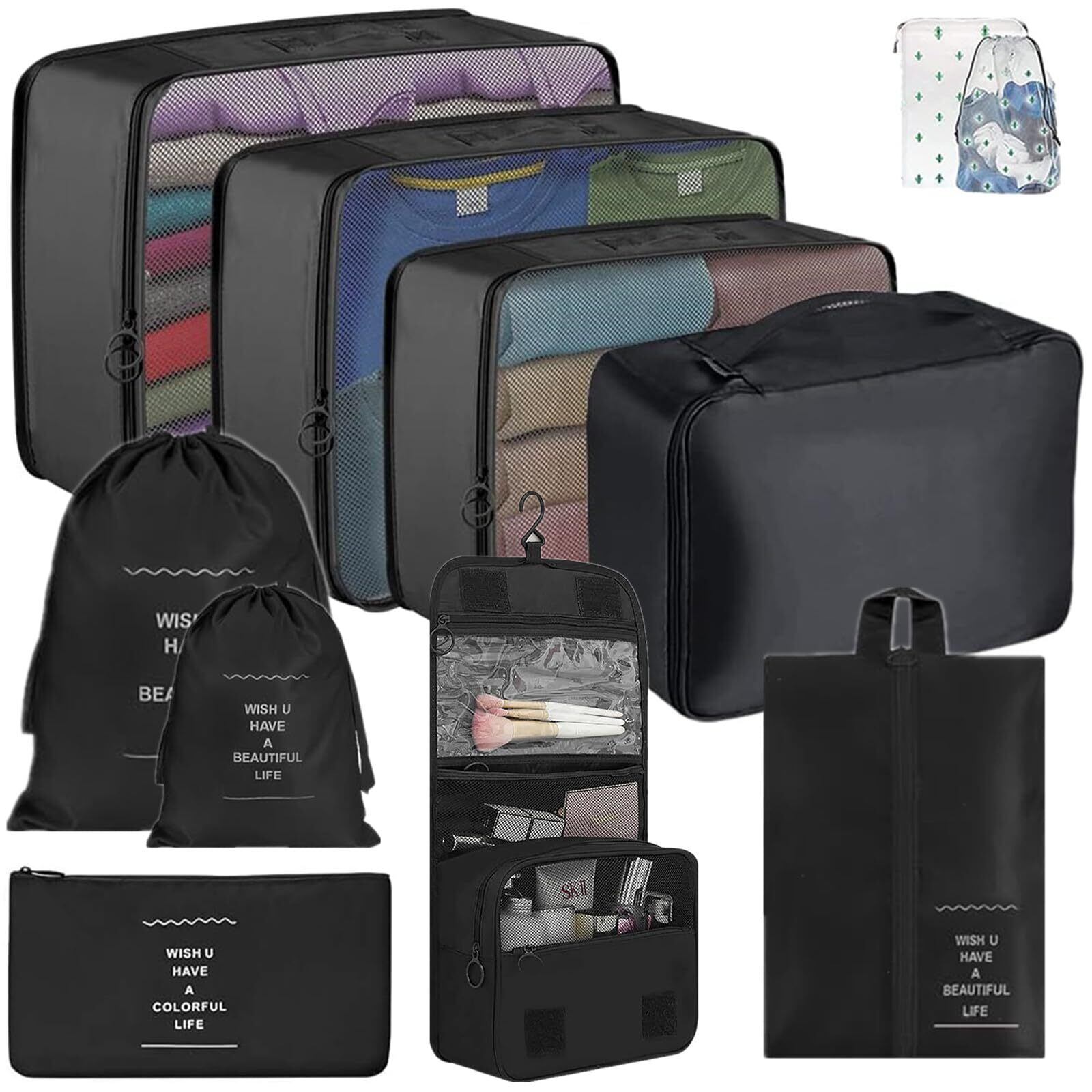トラベルポーチ 11点セット 旅行用 ポーチセットおしゃれ アレンジケース パッキングポーチ 衣類収納 出張 整理 便利グッズ 靴用 下着収納 洗面用具 シューズ 小物入れ 軽量 防水 大容量 収納 旅行用便利グッズ (ブラック)