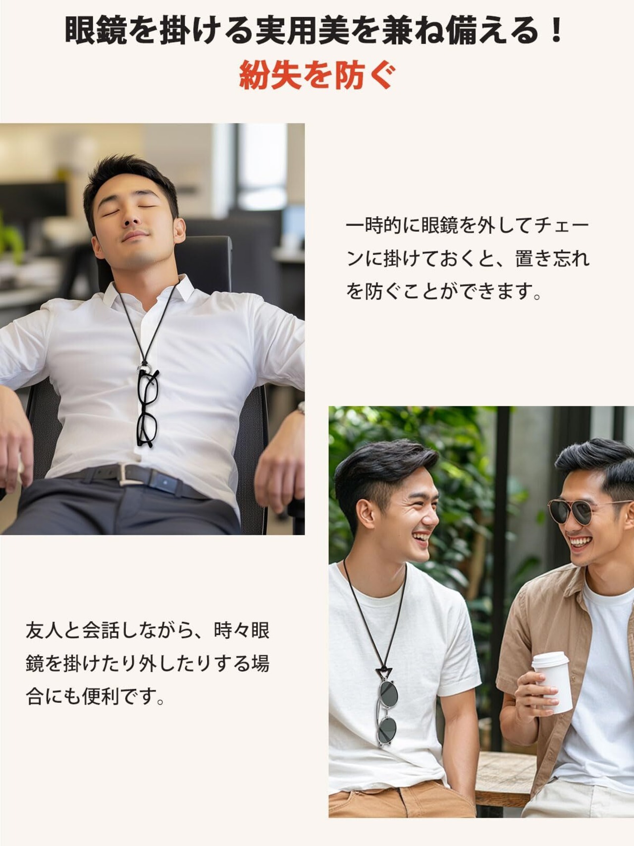 [FaithHeart]ネックレス メンズ グラスホルダー ネックレス サージカルステンレス 金属アレルギー対応 リングペンダント 革紐 人気 アクセサリー 男性