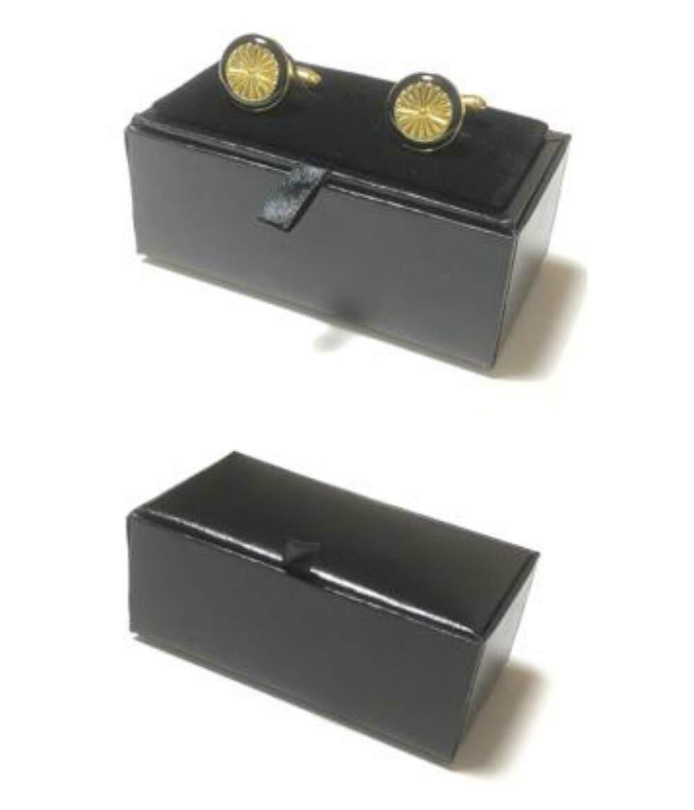 [Ree&Mee] カフスボタン 菊紋 カフス 【男の魅力を見せる】菊紋章 カフリンクス 開運 菊御紋 専用BOX箱付き (ブラックゴールド)