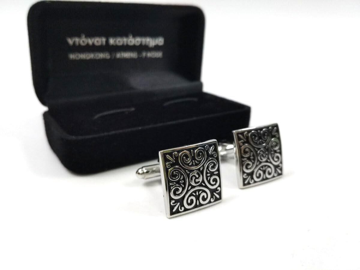 アラベスク柄が魅力的なスクエア型カフスボタンです。