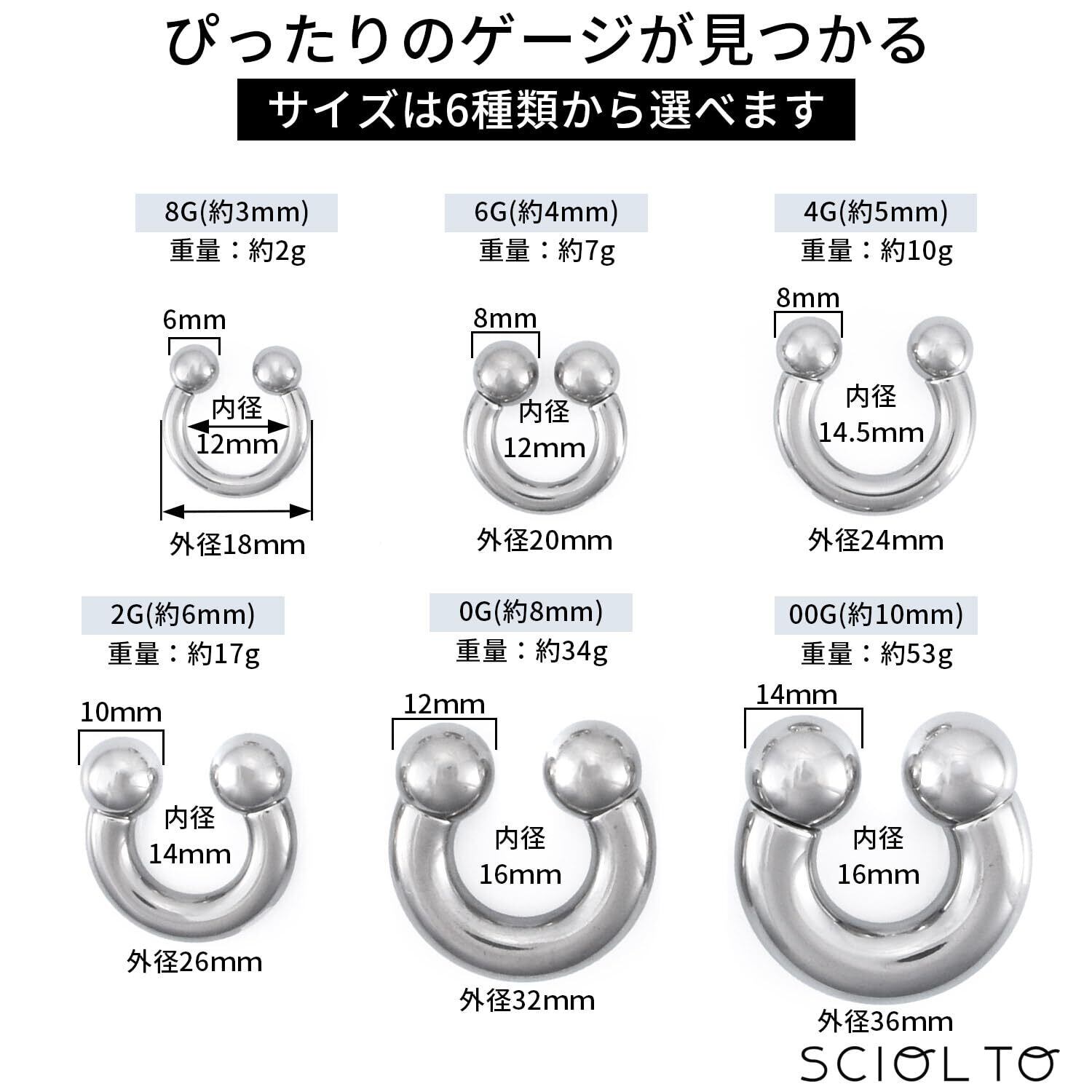 【人気商品】[§SCIOL TO] (ショルト)サーキュラーバーベル ラージゲージ ボディピアス [00G~8G] イヤーロブ ヘリックス 耳たぶ 軟骨ピアス ステンレス