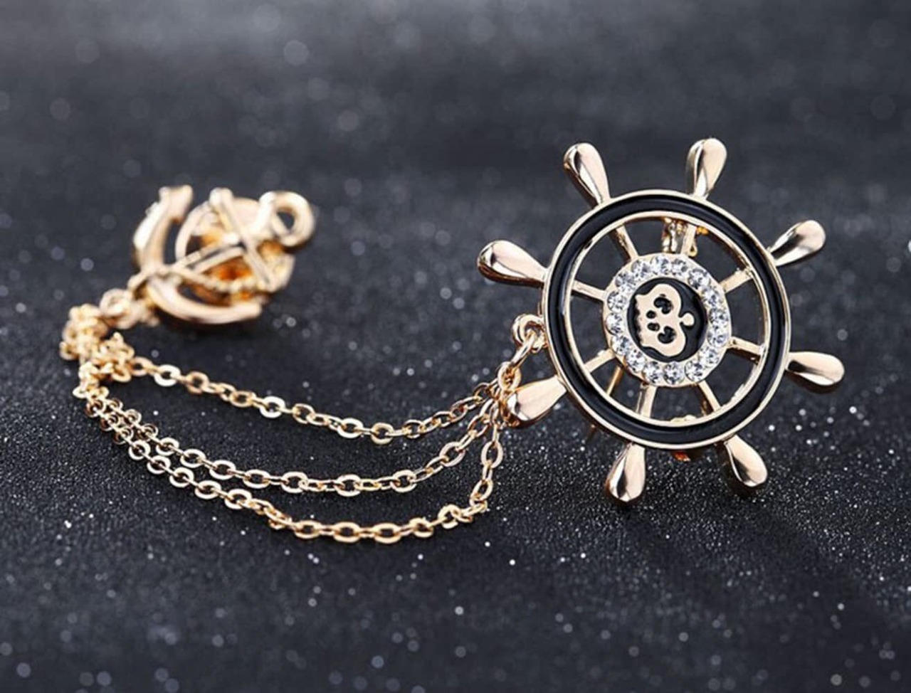 【特価セール】WOWTAC 王冠 の 舵 ラペルピン メンズ アクセサリー チェーン ブローチ マリン セーラー 錨 舵 クラウン