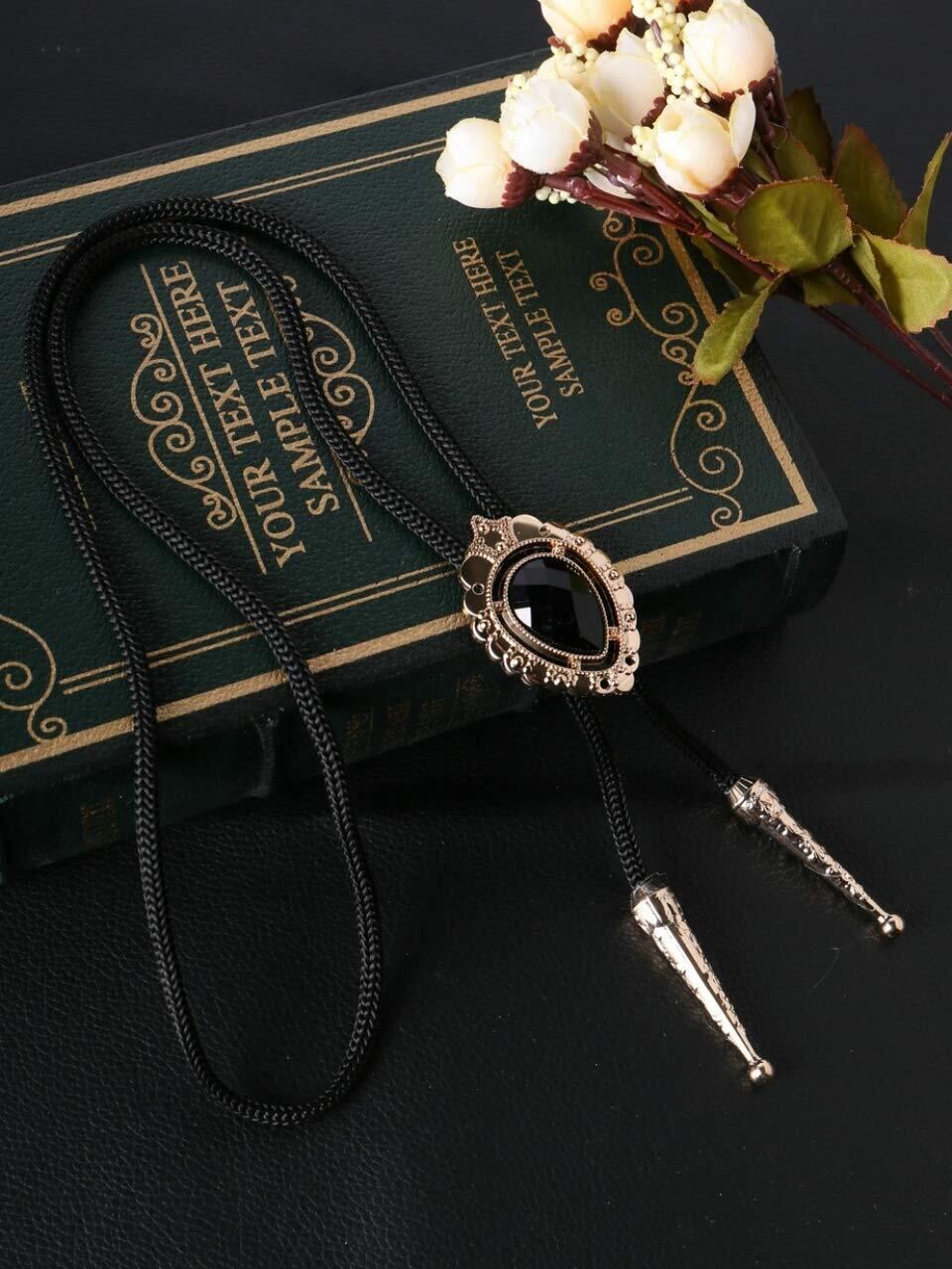 [ブブ オーハナ] ループタイ ポロ ボロ ロープ タイ ネクタイ メンズ オフィス カジュアル ビジネス アクセサリー (黒)