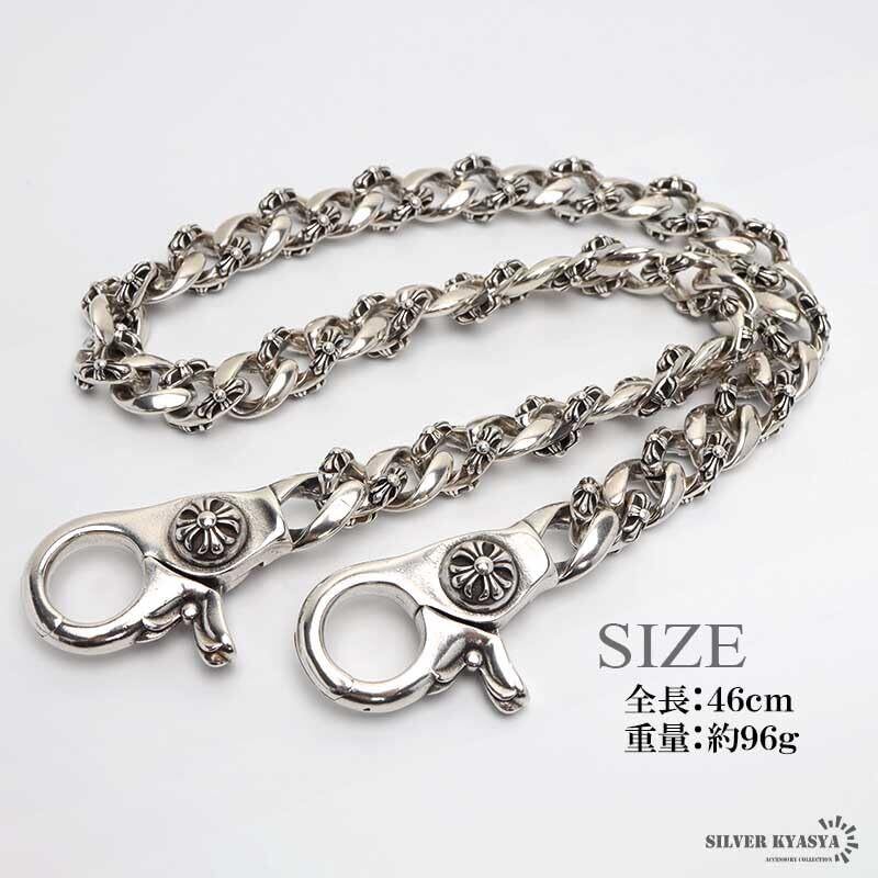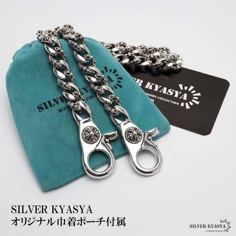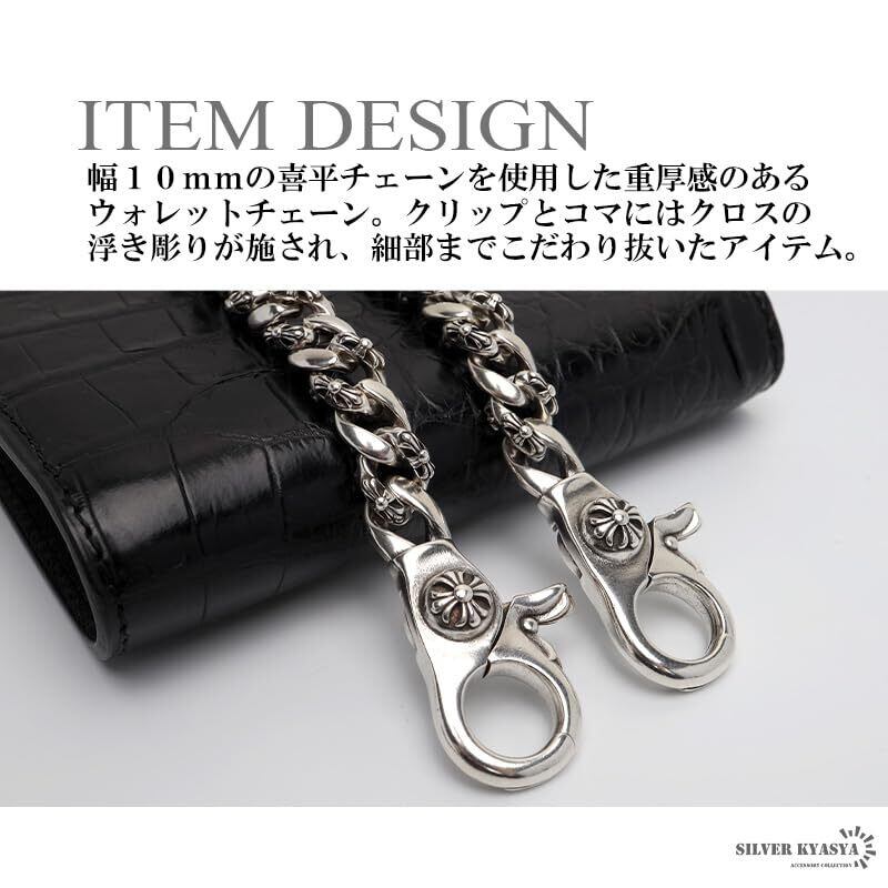 [silver KYASYA] 極太 クロス ウォレットチェーン 喜平チェーン 幅10mm 太幅 ごつめ フック 十字架 メンズ ダブルクリップ 燻し風加工 財布紐 重厚 財布 鎖 盗難防止 紛失防止