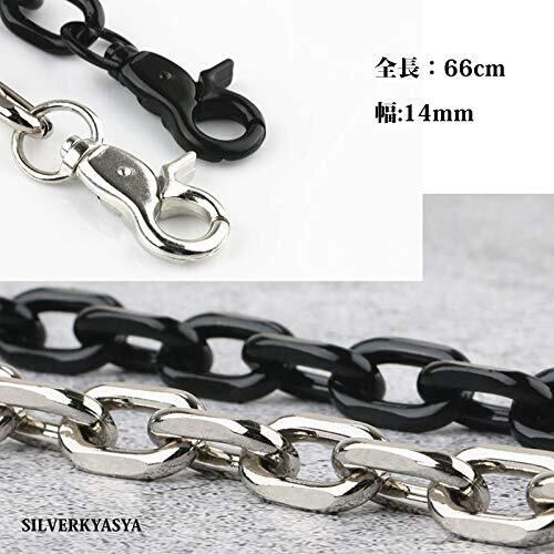 [silver KYASYA]太幅 あずきチェーン ウォレットチェーン シルバー ブラック 銀 黒 キーチェーン シンプル キーホルダー 2クリップ ダブルクリップ チェーン バイカー アクセサリー 男性 軽量