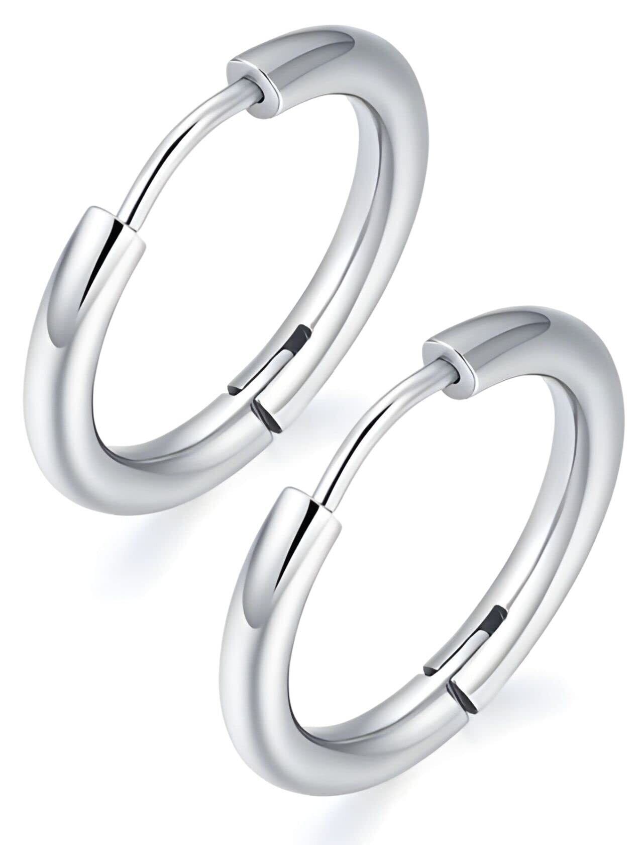 【簡単着脱の中折れ式】パカッ!と開いてカチッ!とはめる中折れ式を採用。キャッチレスなデザインのためキャッチをなくす心配もありません。フープピアスのポスト(針)は先端を丸く加工しているのでピアスホールに優しく、つけっぱなしでも問題ございません。