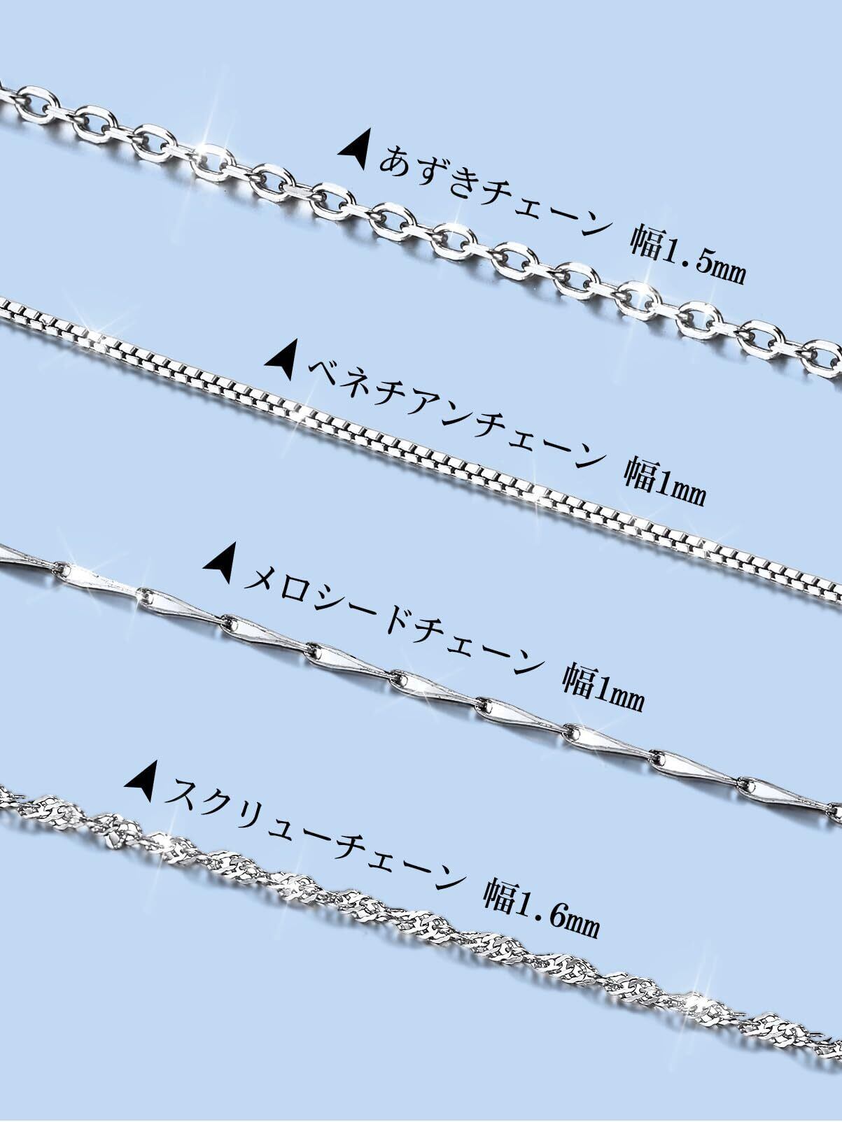 ✿[あずきチェーン] チェーンのデザインの中でも定番タイプで長年の人気を誇るあずきチェーンです。チェーンの太さは1.5mmで、長さは40cm/45cm/55cm+5cmアジャスター付きます。