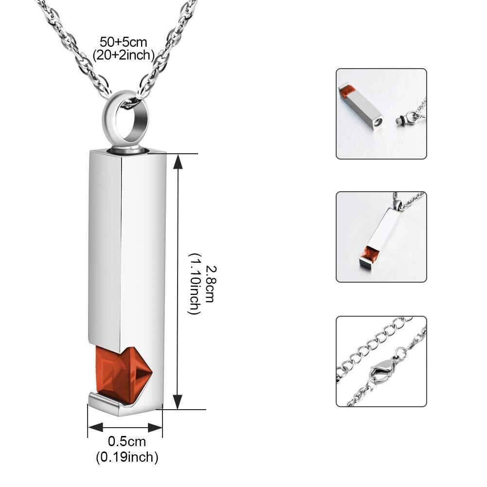 [Dletay] メモリアルペンダント 直方体 誕生石 ラインストーン 手元供養ペンダント 遺骨入れネックレス 取り外し可能 メンズ レディース 記念ジュエリー