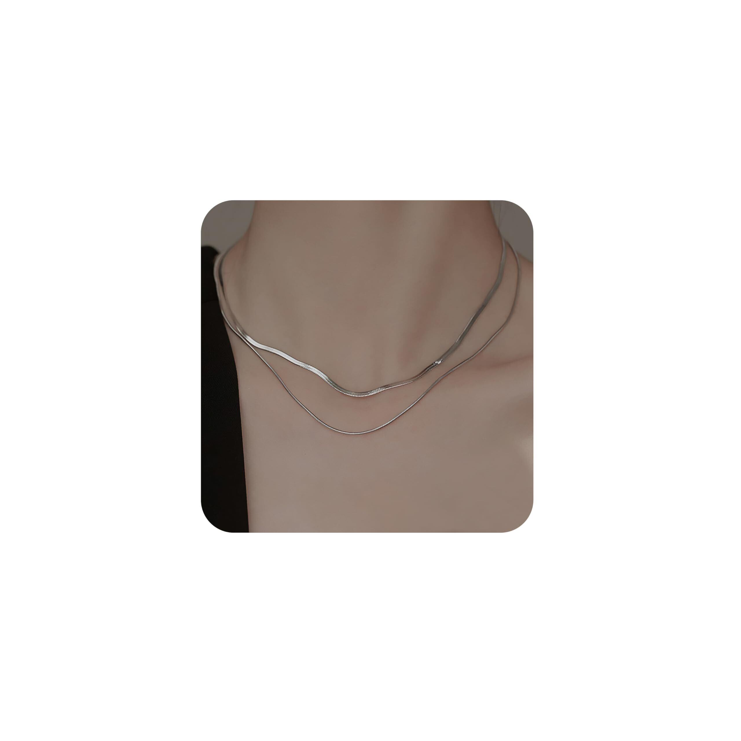[Mesaro] ステンレス 二重 ネックレス シンプル ダブルチェーン カジュアル スネークチェーン シルバー おしゃれ レディース 女性 ギフト プレゼント デイリー ジュエリー