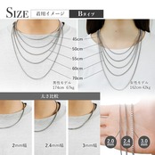 【バリエーション豊富な30種類】 カラーがシルバー、ゴールドの2色。チェーン幅は細めの2mm,2.4mm,3mm幅,長さは短めの45cm,50cm,55cm,60cm,70cmまでの計30種類をご用意しておりますのでお好みのカラー、サイズのチェーンが選べます。