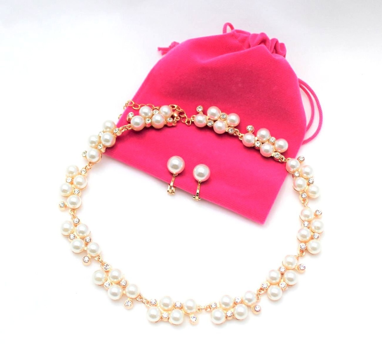 [N-Style] パール ラインストーン ビジュー ネックレス ピアス イヤリング セット レディース