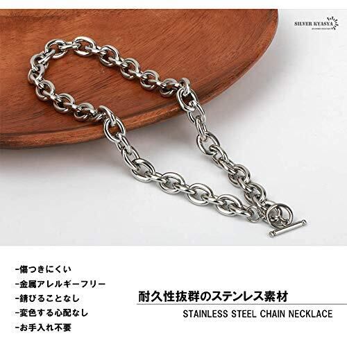 [silver KYASYA]太幅 ステンレス チェーンネックレス メンズ レディース マンテル ネックレス シルバー 銀色 あずきチェーン シンプル ネックレス 50cm