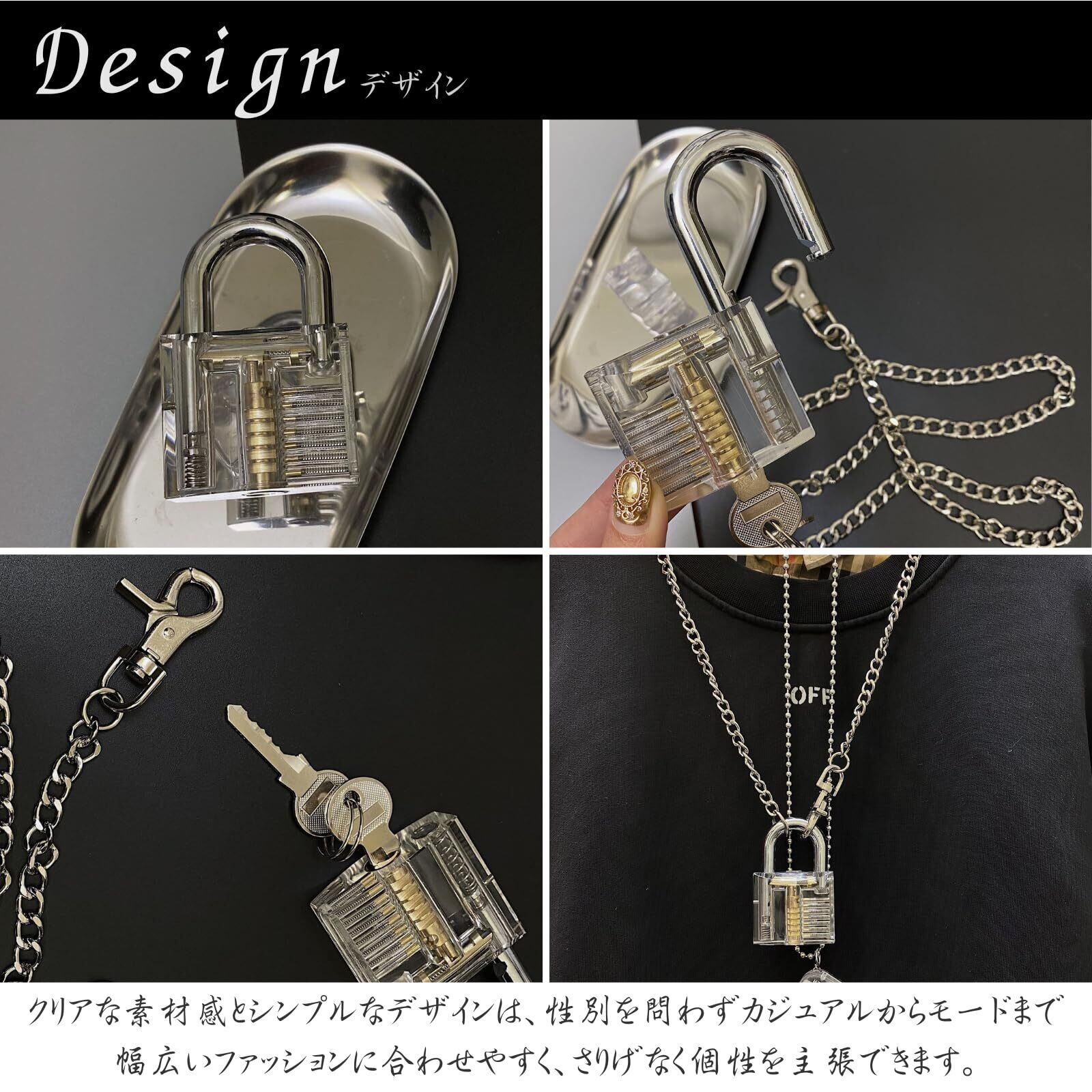[MYSKUFT] ネックレス スケルトン 南京錠 ペンダント ロック アクリル アクセサリー 透明 クリア ユニセックス チェーン パドロック チャーム