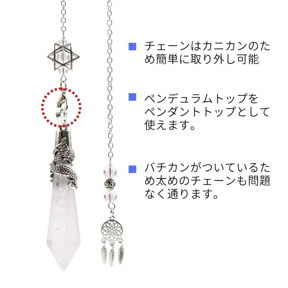 ✨ 取り外し可能なチェーンで多用途にー 全長約24cmのチェーンはカニカン仕様で簡単に取り外し可能。チェーンを変えるだけでペンデュラムをペンダント、アクセサリートップやネックレスとしても活用できます。