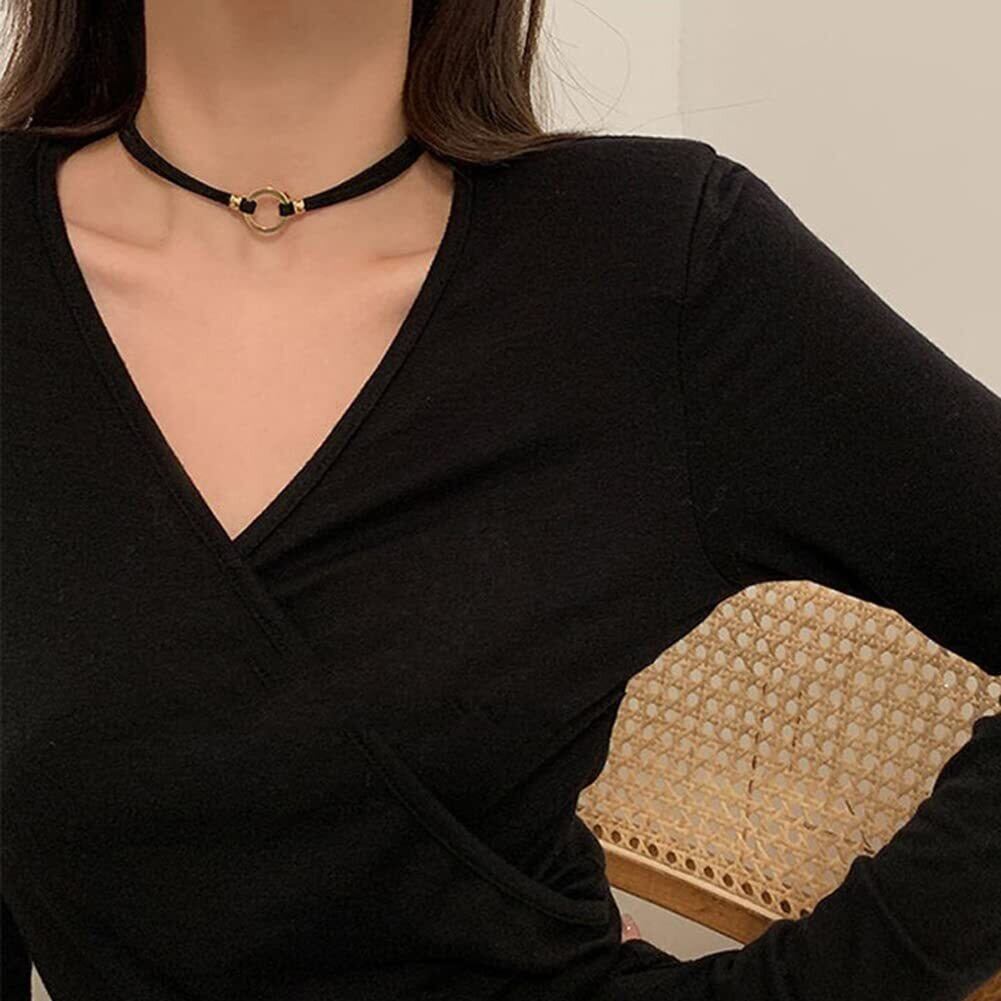 【新着商品】[Deelfel] チョーカー レディース 黒 チョーカーリング 円形 円環チョーカー 首輪 ファッション アクセサリー ステンレス 金属アレルギー対応 サイズ調整可能
