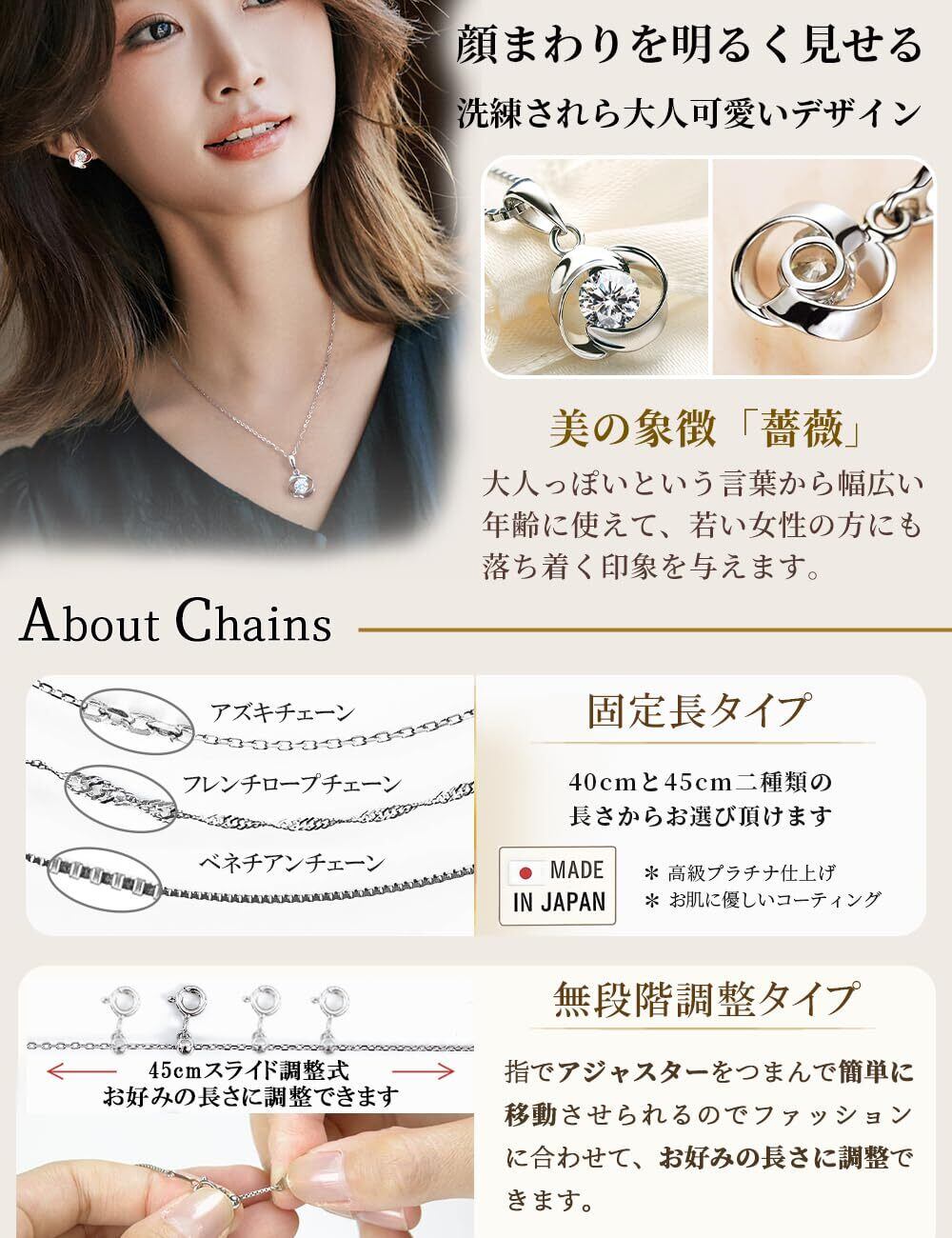 【上品なデザイン】 バラは愛と美、喜びの象徴です。スワロフスキージルコニアを使った薔薇モチーフのレディスネックレスは日常使いしやすい、上品なデザインでギフトにもぴったりです。キラリと光る一粒のスワロフスキージルコニアが上品でありながら、かわいらしさに華やかさを添えたデザインで、美しい石が貴女の胸元で美しく輝きます。 優美な曲線が描くバラの輪郭がとても美しいモチーフペンダントの仕上がり、魅力あふれるローズモチーフの大人色レディースネックレスです。シンプルなデザインなのでプチジュエリー的なアクセサリーとして普段使いにも是非オススメなレディースネックレス。 シルバーのネックレスレディースは柔らかな輝きも美しく、シンプルながらも可憐な印象に。