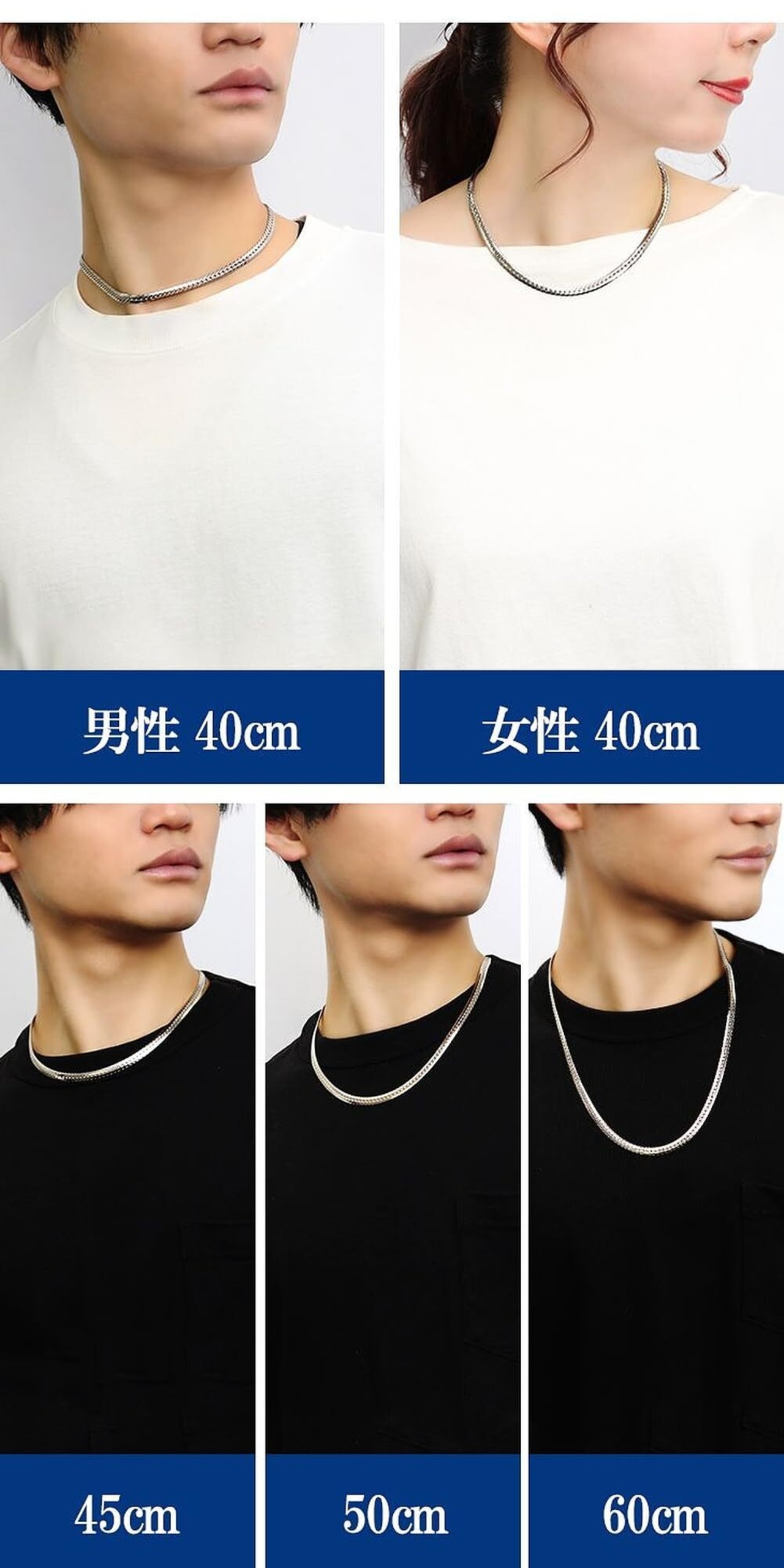 素材 チタン 長さ(金具含む) 約40cm/約45cm/約50cm/約60cm(選択式) チェーン種類 平喜平チェーン 幅 約5.5mm 金具 カニカン チェーン端(受け側)金具の大きさ 横幅 約6.8mm 厚み 約1.1mm