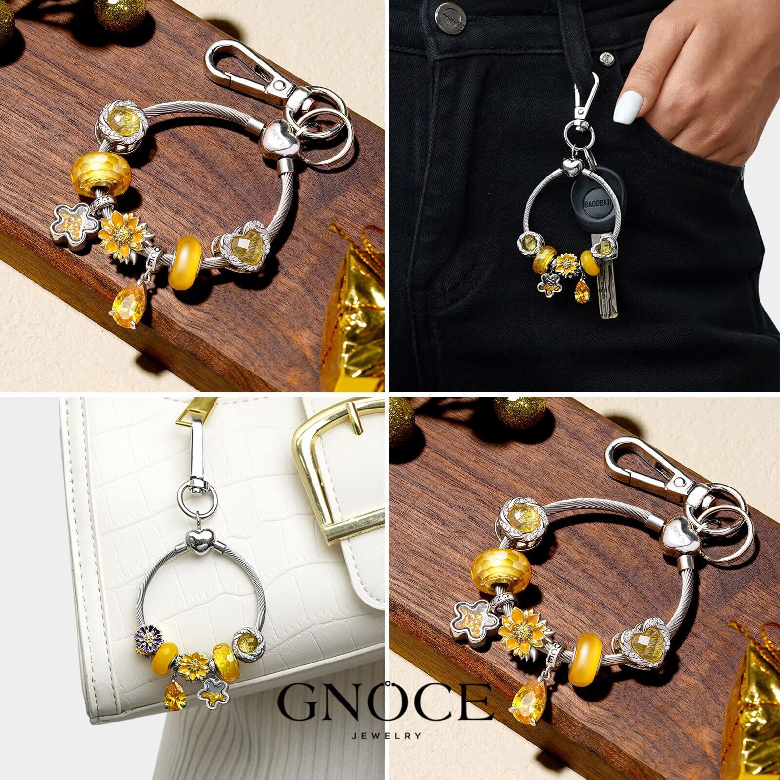GNOCEシグネチャーチャーム万能チャームホルダー&キーチェーン ステンレススチールチャームブレスレットギフト 女性 女の子 妻 娘 キーリング&キーホルダー ロブスタークラスプ付き, One size, シルバー, 宝石なし