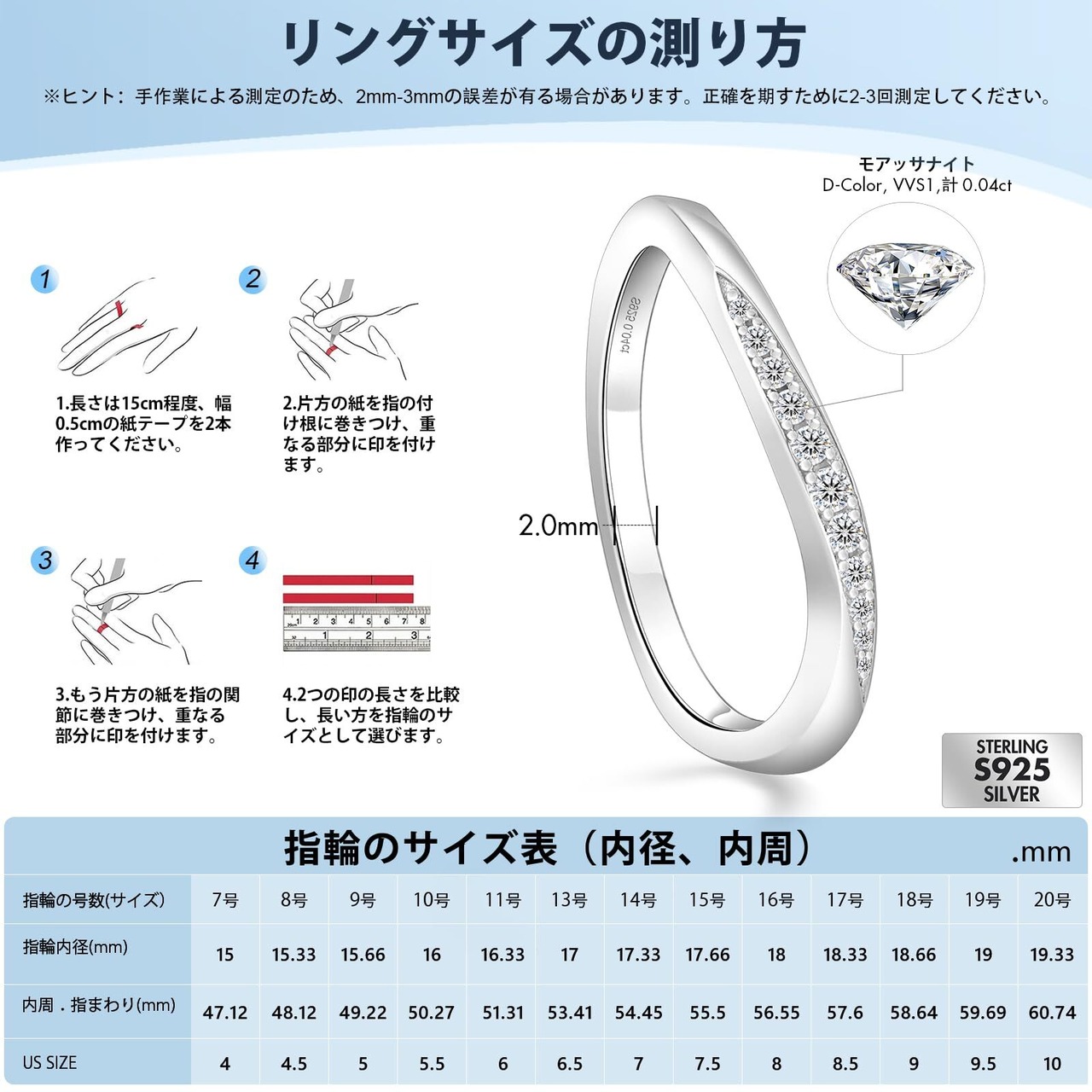 本格ジュエリー仕様のシルバー925製のモアサナイトリング。