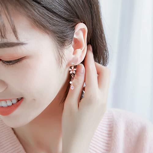 【数量限定】ONNFMH イヤリング ノンホールピアス 18k メッキ 花 揺れる 和風 レディース 人気 (ピンク樹脂 イヤリング)