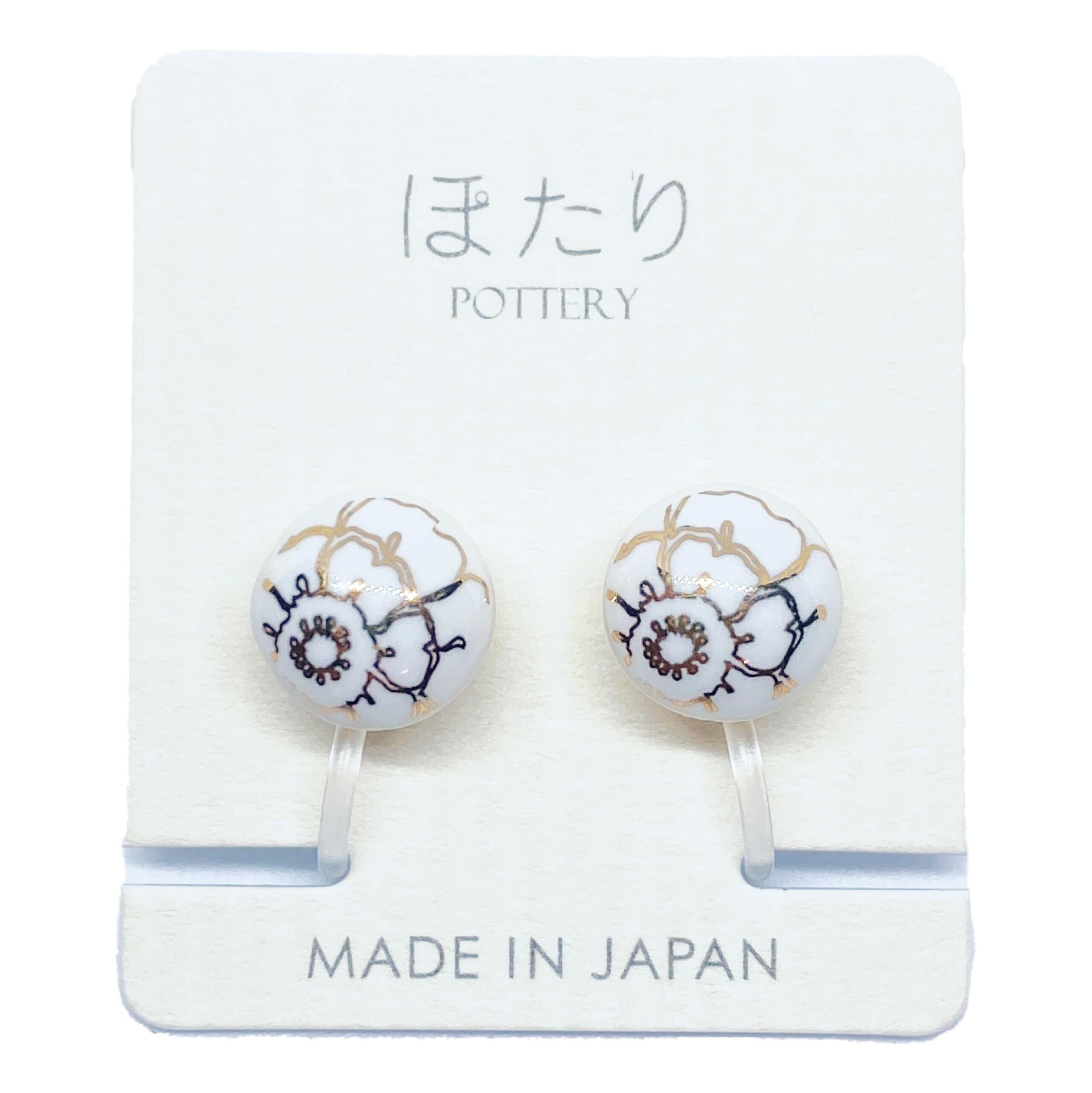 【ぽたり】陶器イヤリング ノンホール 陶器 イヤリング 美濃焼 金彩 耳飾り アクセサリー 日本製 伝統 樹脂イヤリング 直径8mm 陶磁器 個性的 おしゃれ お出かけ 花柄 日本の花
